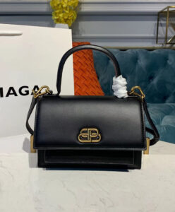 Polish off looks with the ultimate ladylike outfit accoutrement: the Sharp XS shoulder bag from Balenciaga. Made in Italy from smooth black leather, the design works a clean silhouette that borrows from traditional satchel styling with a compartmentalized interior and a fuss-free flap-down top. Carry yours in-hand or by the removable shoulder strap.