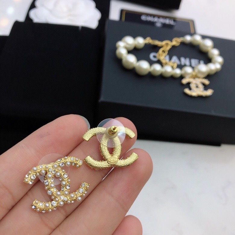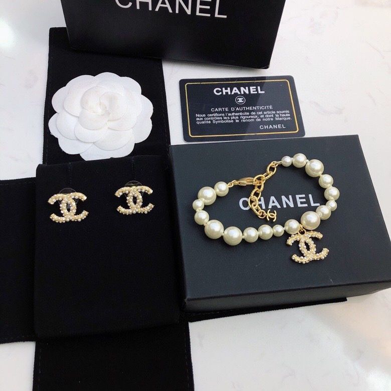 Chanel earrings and Chanel bracelet set ccjw1215-cs