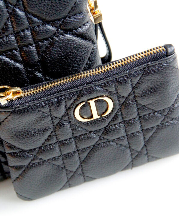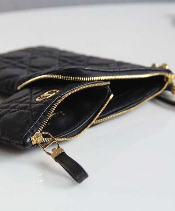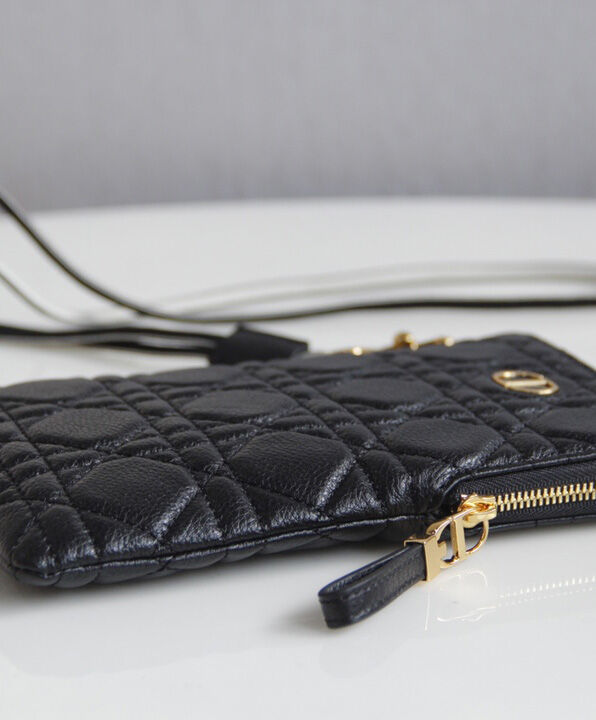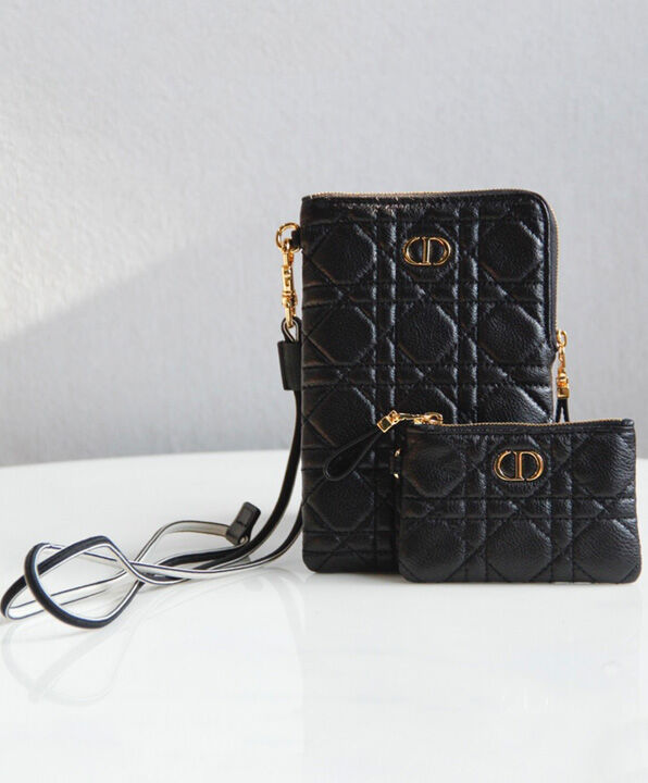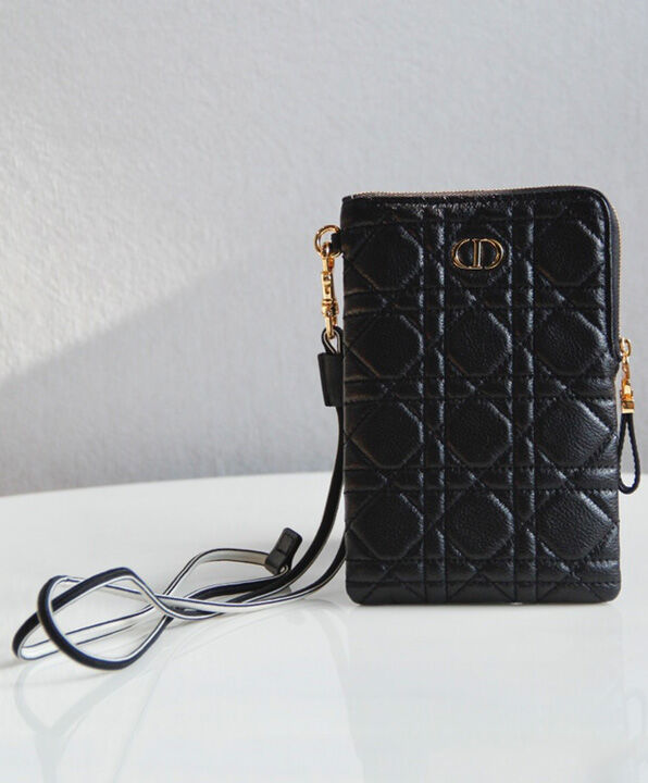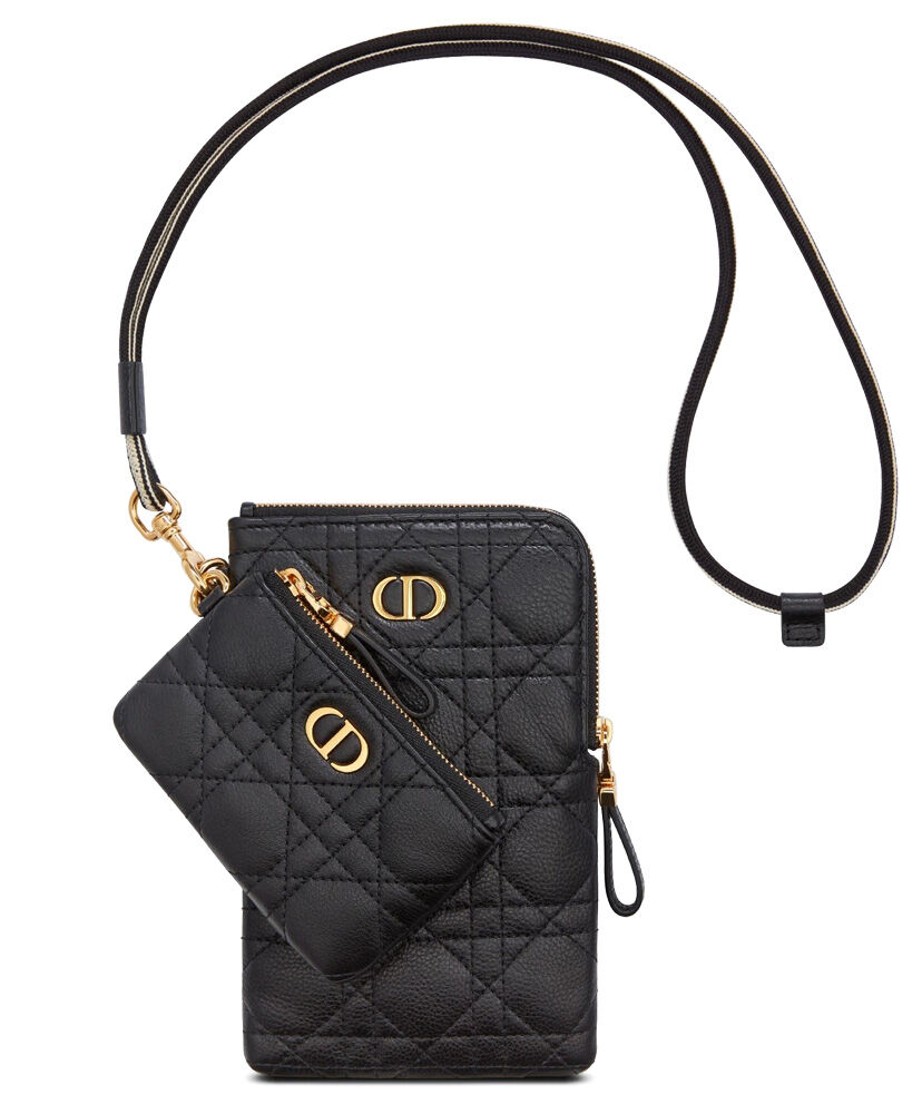 The Dior Caro multifunctional pouch is a hybrid creation made with supple calfskin and embellished with hallmark Cannage topstitching. It features two detachable zipped elements. The small pouch can hold keys or money while the more spacious one can store a phone. The accessory, with its detachable cord, can be worn crossbody, around the neck or slipped into a bag.