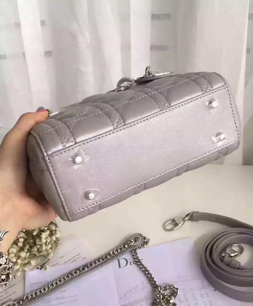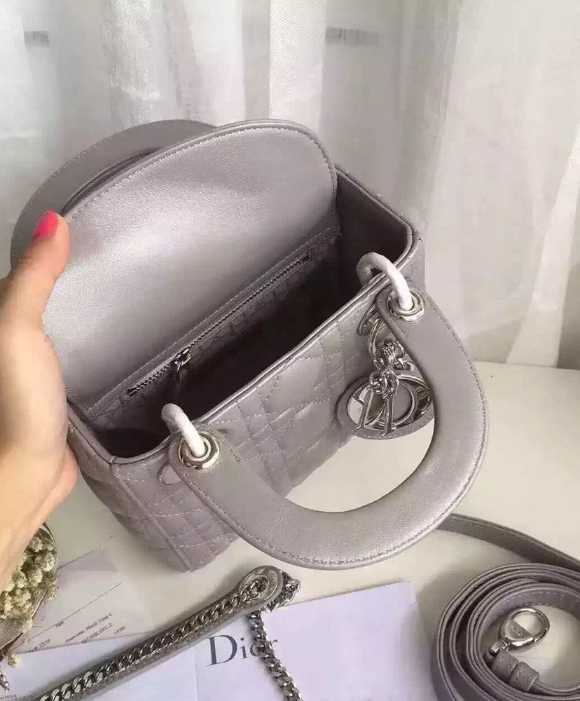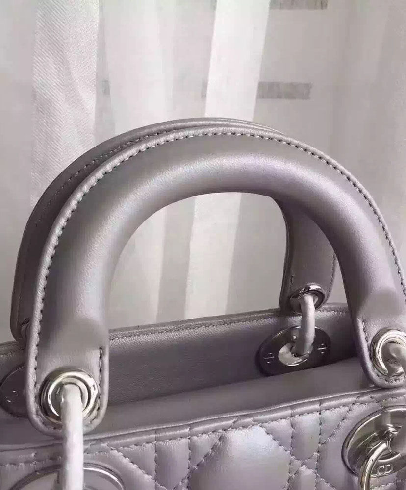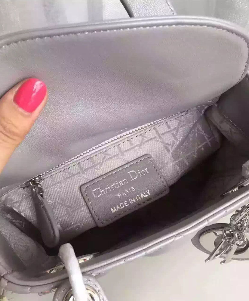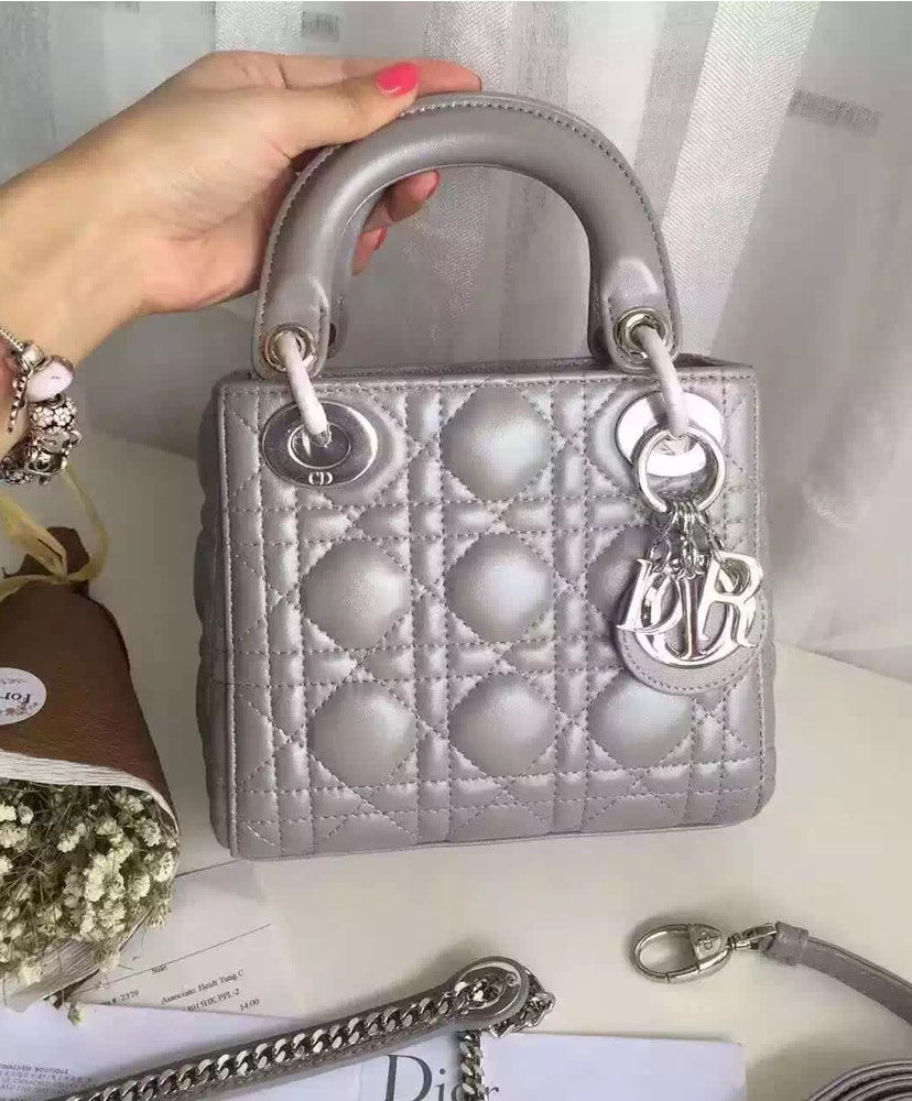 Dior lady classic tote bag with lambskin is always bright spot at any place.A timeless and unique work of art, the “Lady Dior” bag is imbued with the Couture spirit of Dior. Meticulously crafted by hand, this mini black lambskin bag is enhanced by iconic Dior “Cannage” stitching.
