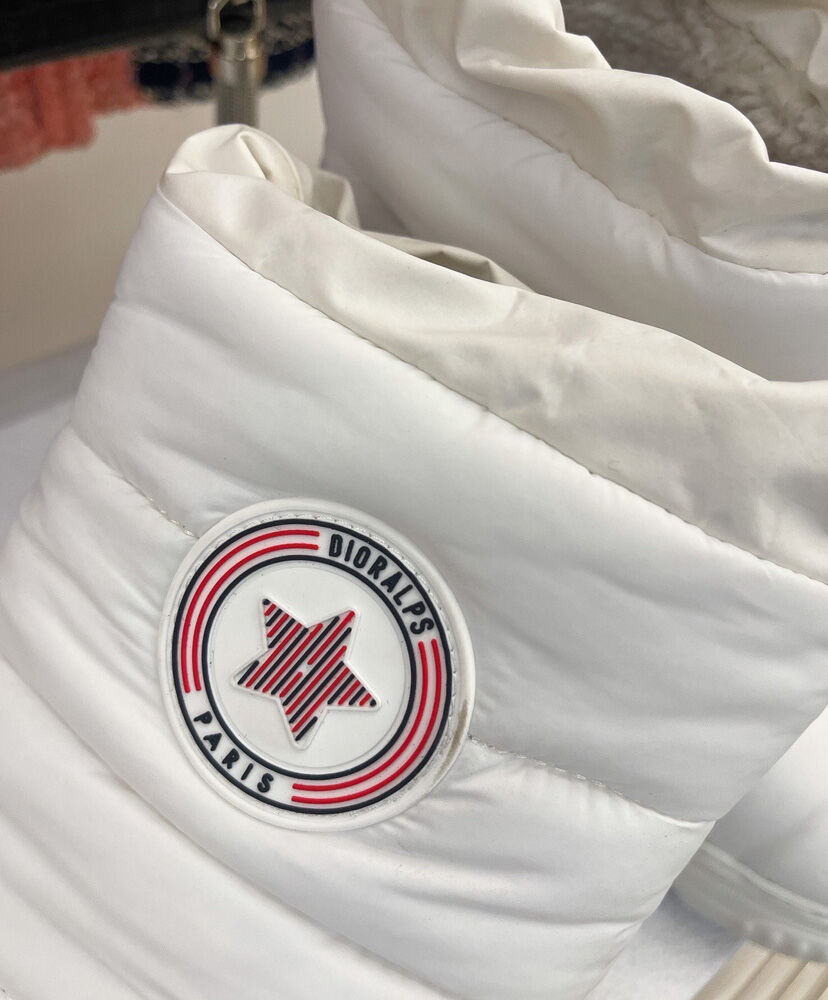 - The Dior Frost ankle boot offers a new take on apres-ski style with a couture variation. The quilted nylon upper reveals the Cannage motif and features a tonal shearling interior, while a drawstring cord offers an ideal fit. A gold-tone Christian Dior PARIS signature completes the rear, and a thick EVA sole offers the ankle boot unparalleled comfort.