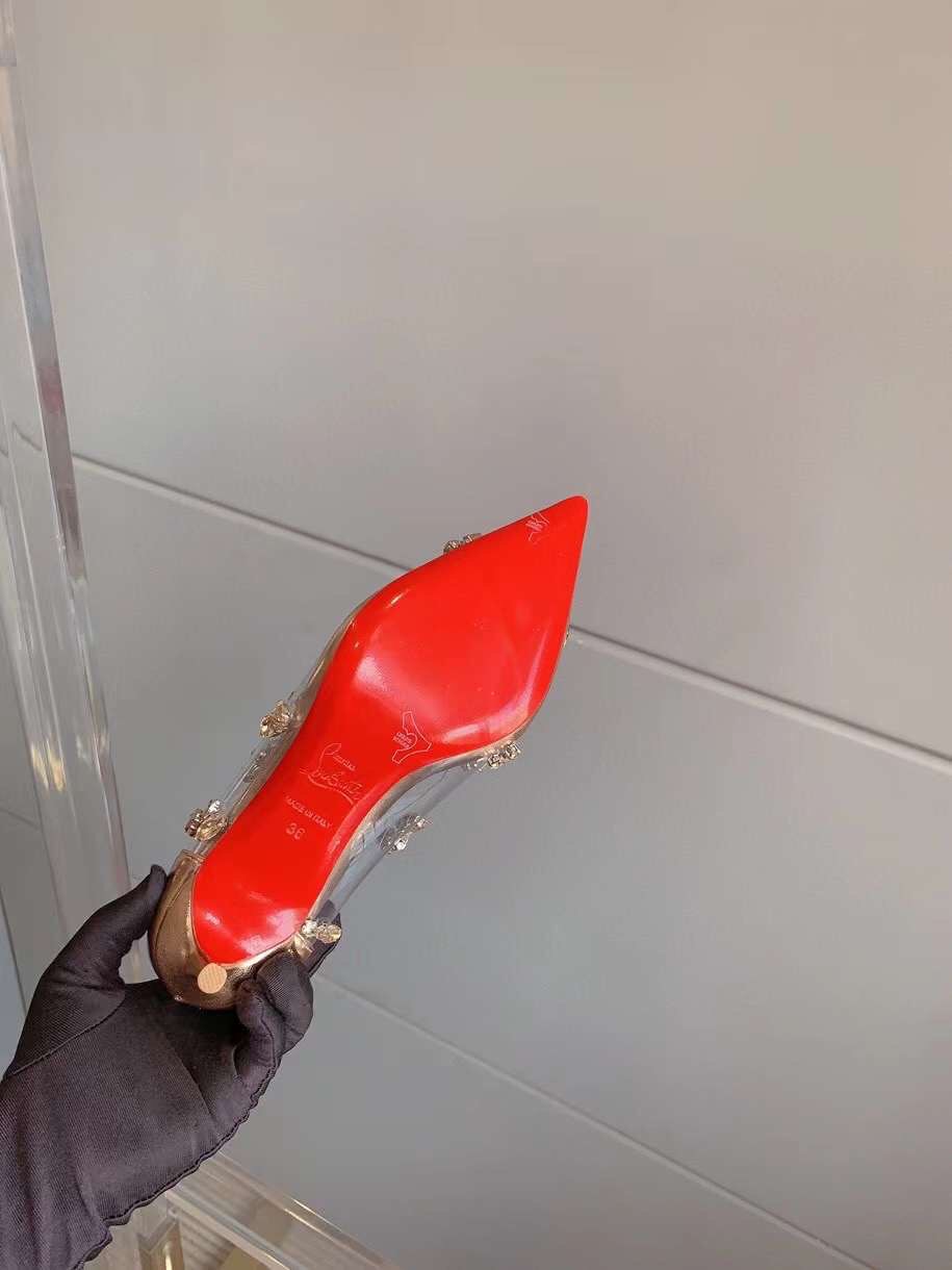 Discover the Iconic Christian Louboutin Collections Style: Christian Louboutin Degraqueen Embellished PVC Pumps. Elevate Your Wardrobe with This Must-Have Piece.