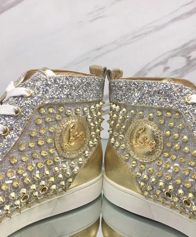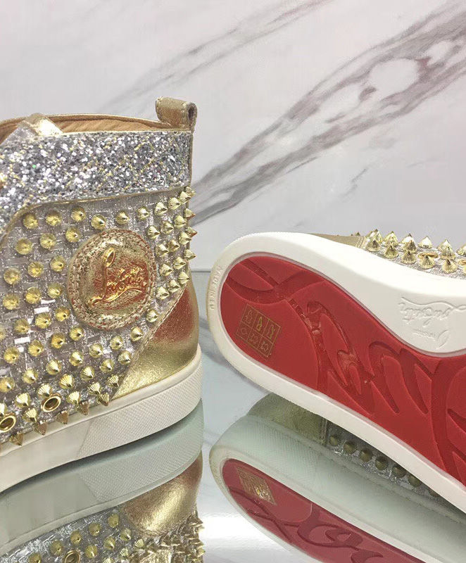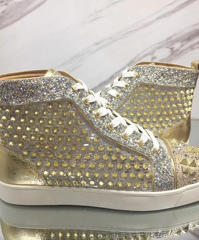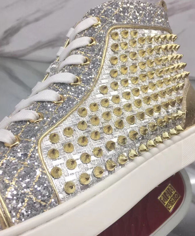 Tonal signature studs accent the uppers of Christian Louboutin’s calf leather Louis high-top sneakers. With exquisite and minimalist accessories, bright details and stitching at the back, the designer has come up with new iterations. They feature a deep toe box design that works seamlessly with all your up and down looks.