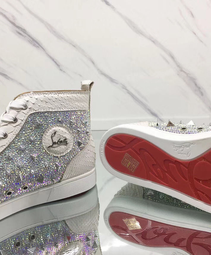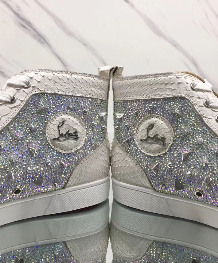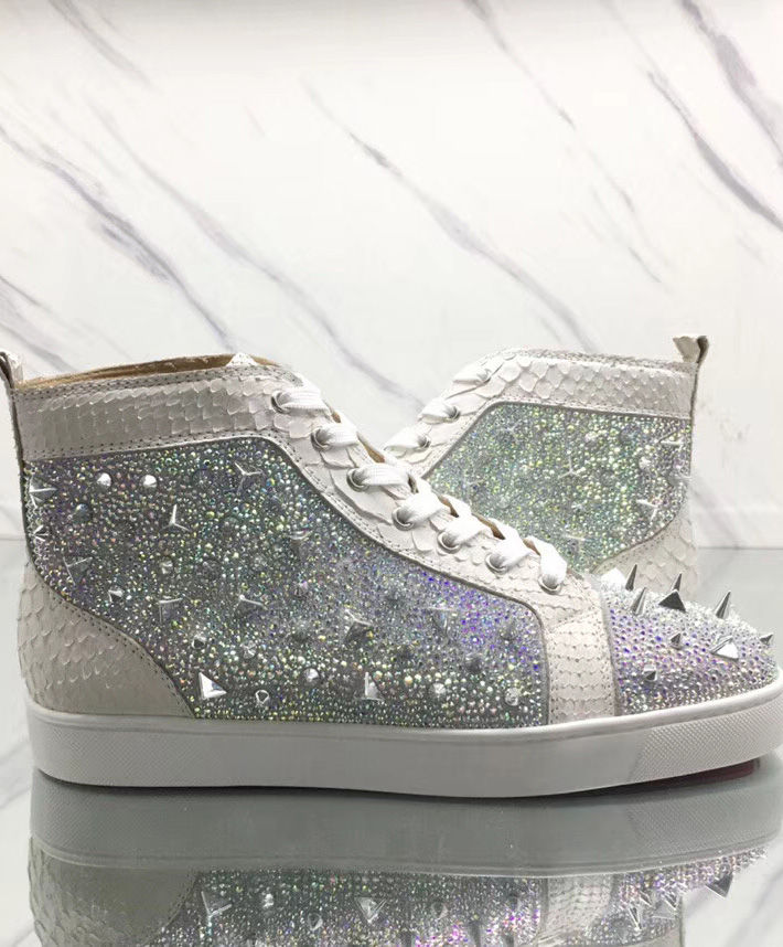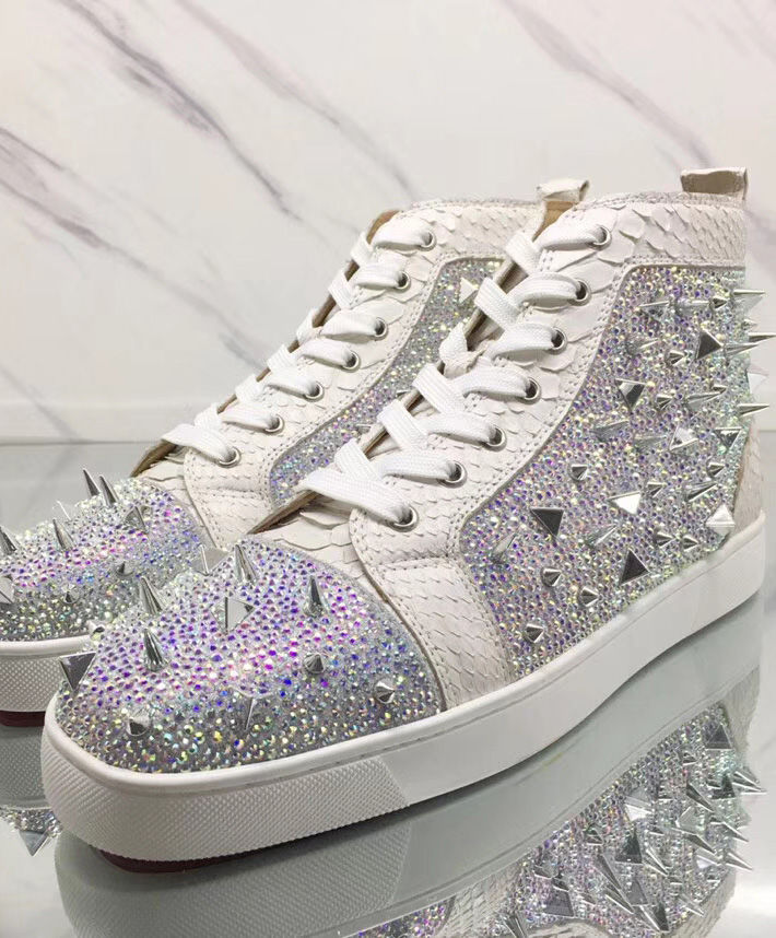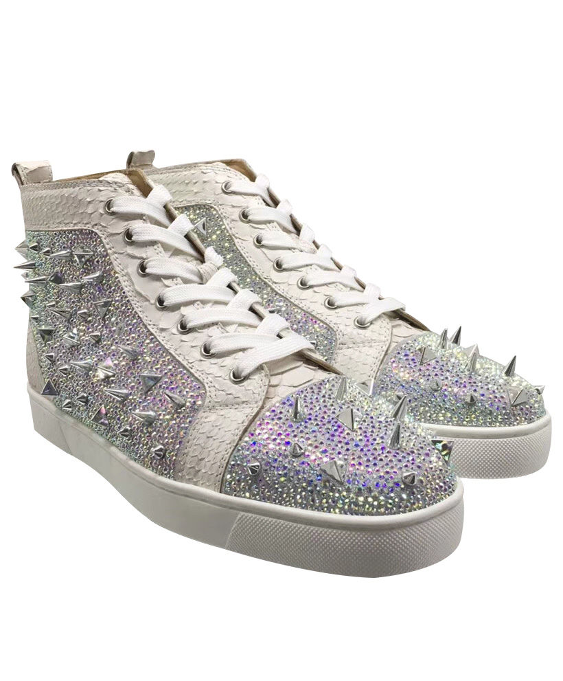 Tonal signature studs accent the uppers of Christian Louboutin’s calf leather Louis high-top sneakers. With exquisite and minimalist accessories, bright details and stitching at the back, the designer has come up with new iterations. They feature a deep toe box design that works seamlessly with all your up and down looks.