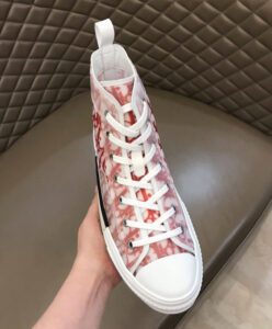 This shoe uses Alex Foxton’s reinterpreted iconic Dior Oblique patterned canvas and an innovative transparent mesh outer layer to highlight the printed interior. The white laces are matched with an appropriate back yarn loop, the white rubber sole has deconstructed and split details, and the outside of the foot is decorated with the “Dior” logo.