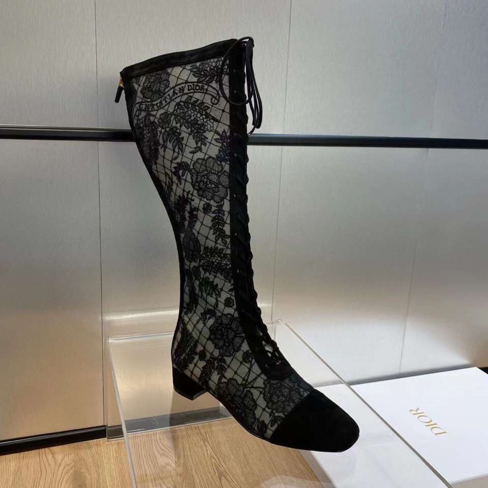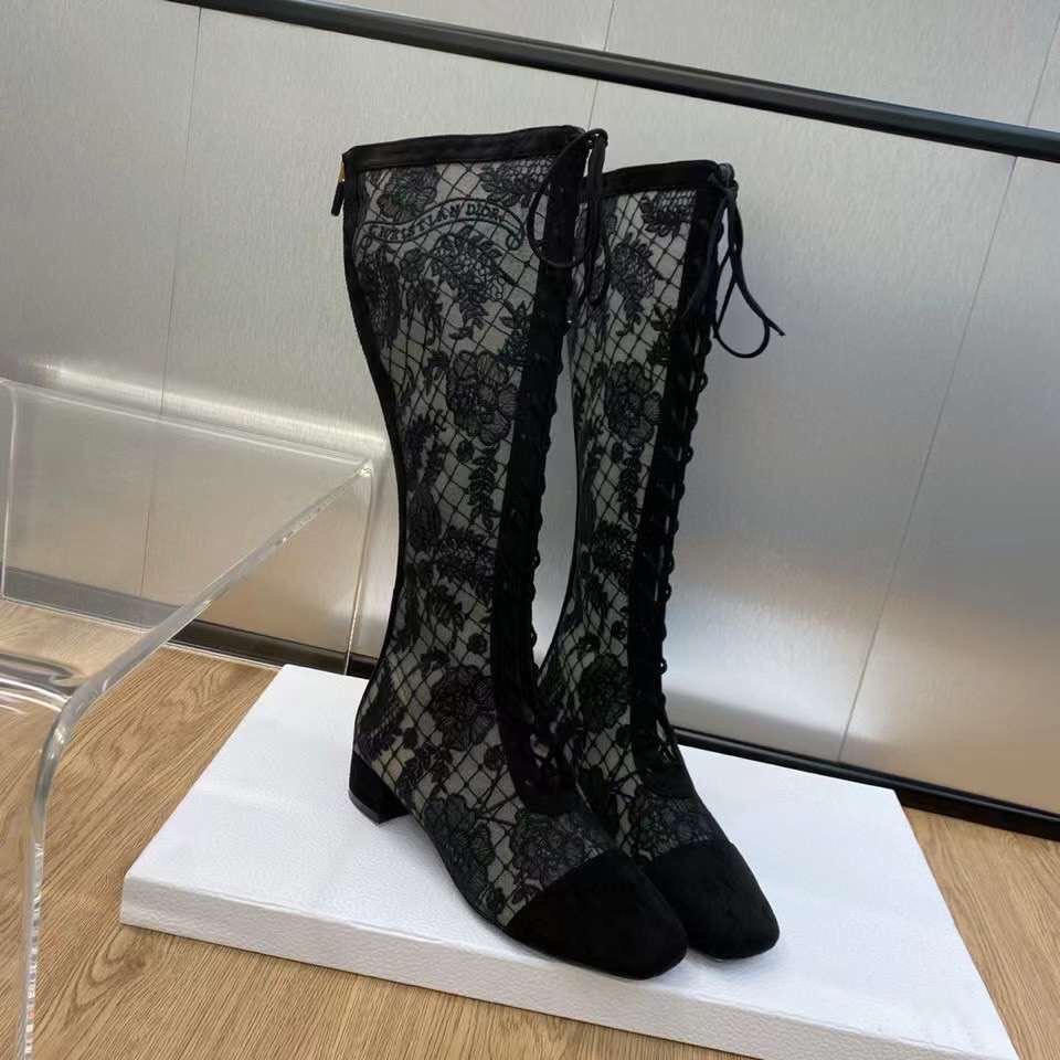 Discover the Iconic Dior Collections Style: Dior Logo Roses Long Boots. Elevate Your Wardrobe with This Must-Have Piece.