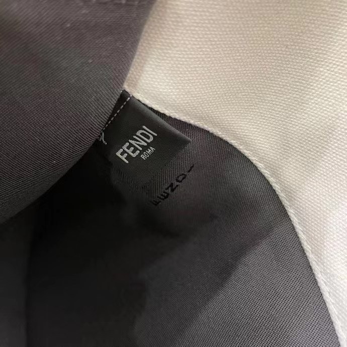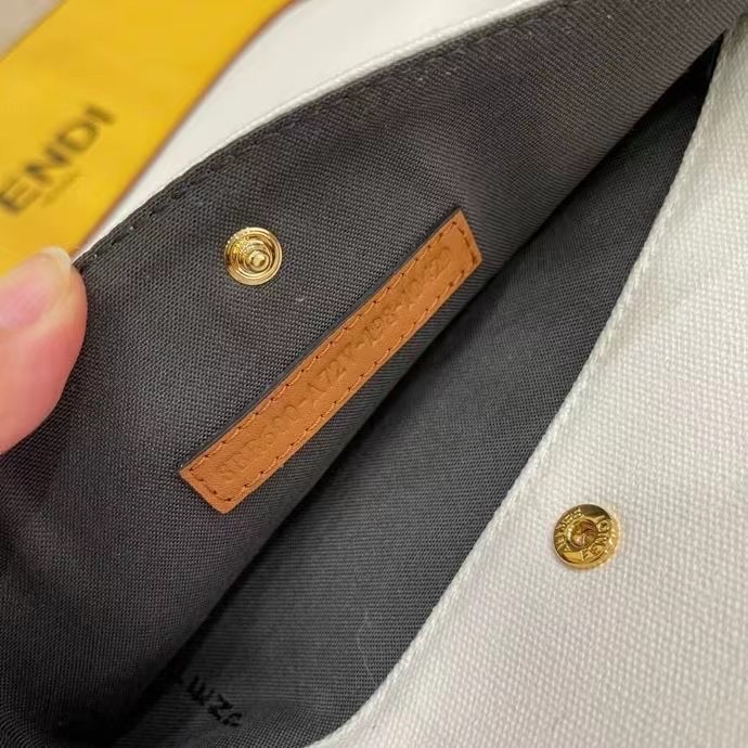 Medium Peekaboo X-Tote bag made of white canvas with an embossed FF motif created in tone-on-tone embroidery. Trimmed in brown leather and decorated with the classic twist lock.