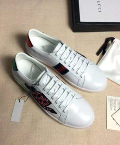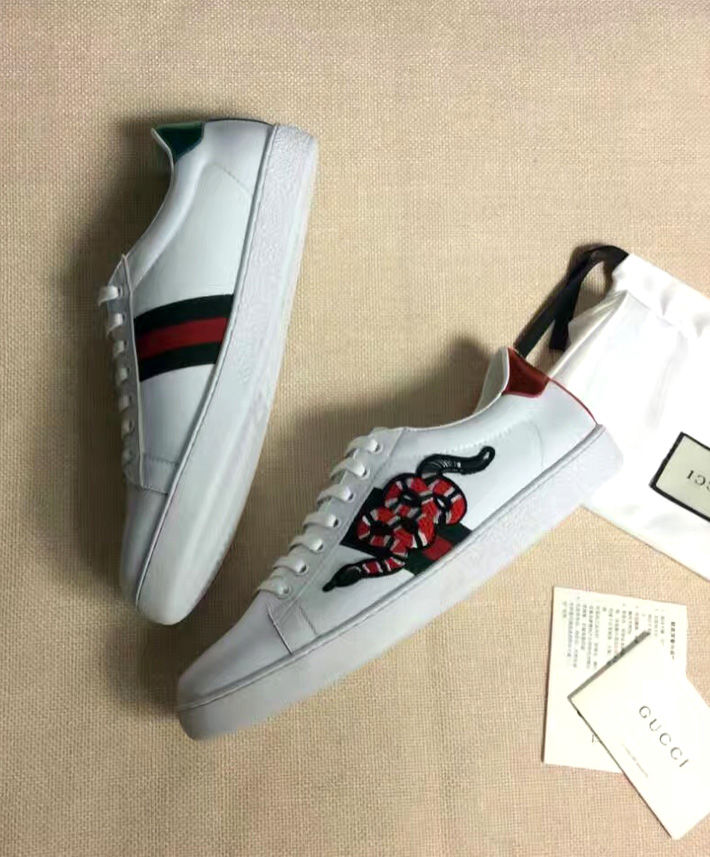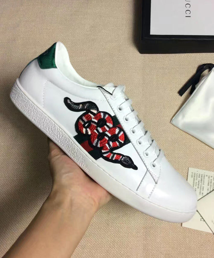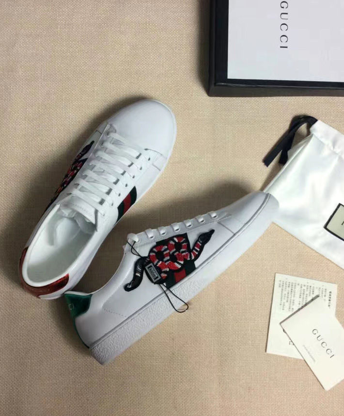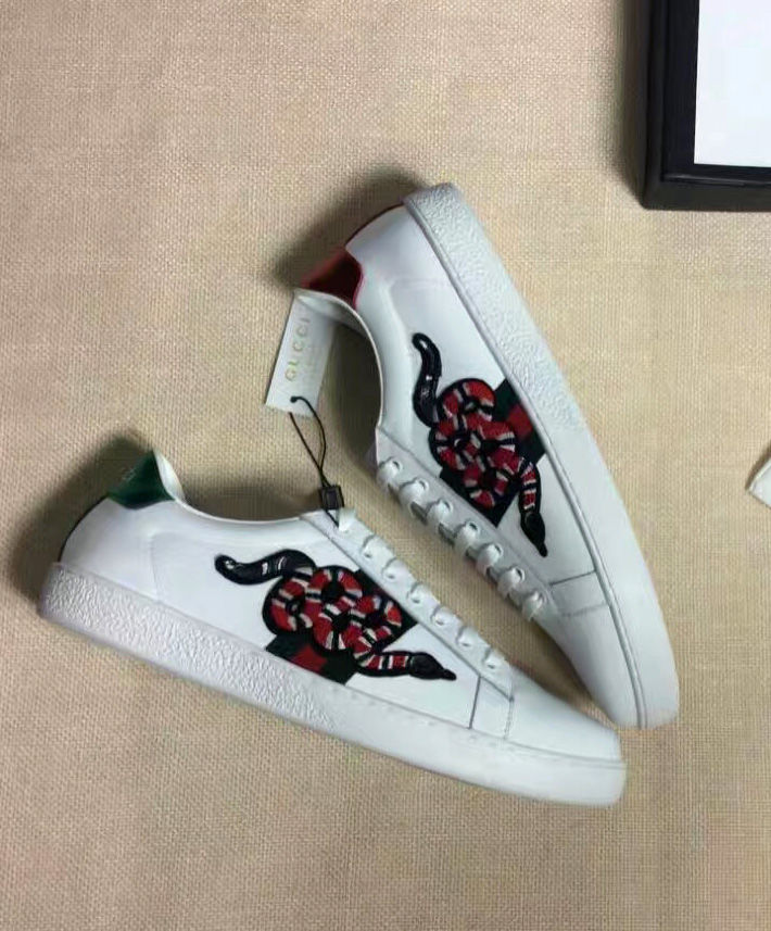 Alessandro Michele presents the Ace low-top with an embroidered snake appliqué set against the Web.