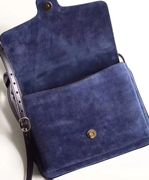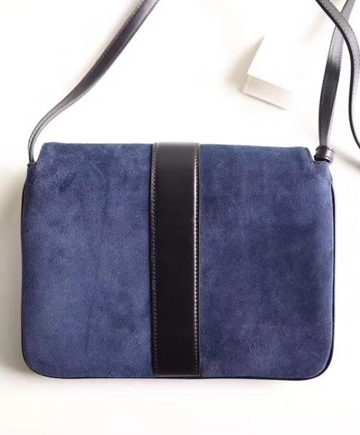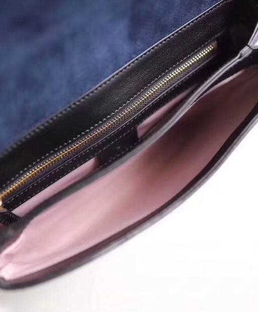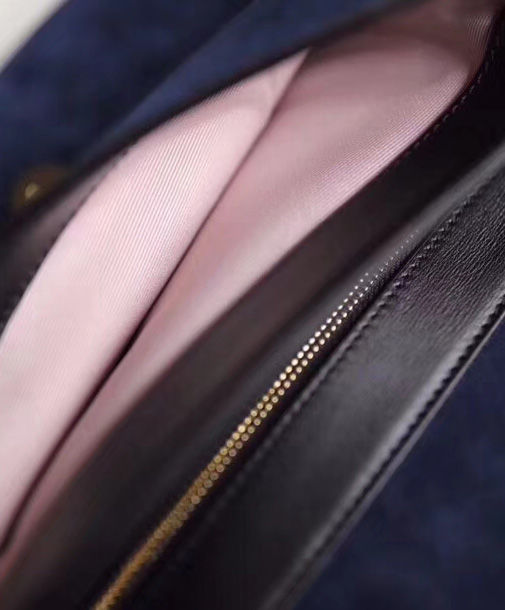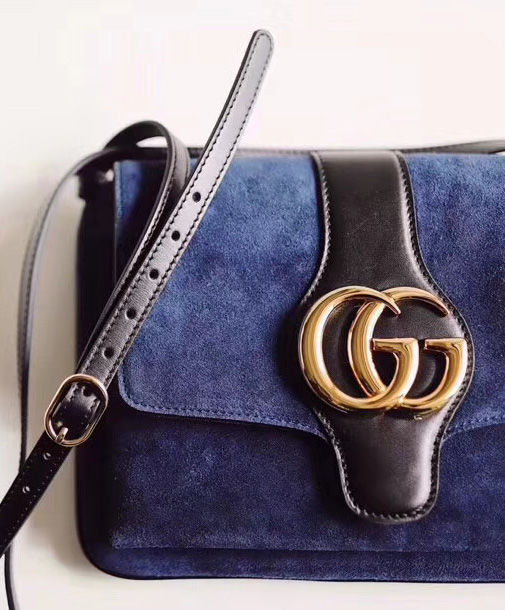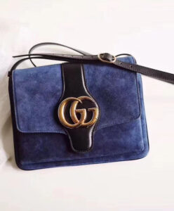 Brought back from the 1970s archives, the Double G hardware defines a new line of shoulder bags, designed with double gussets and an exaggerated flap. Here, the combination of black suede and leather details enhances the silhouette’s vintage feel. The accessory was presented in the Cruise 2019 collection, revealed in the evocative setting of the Promenade des Alyscamps, an ancient Roman necropolis in the French town of Arles—which gives the name to the line.