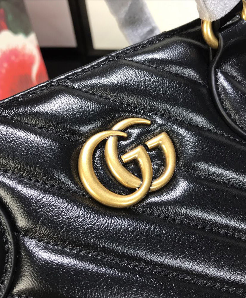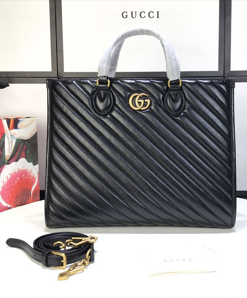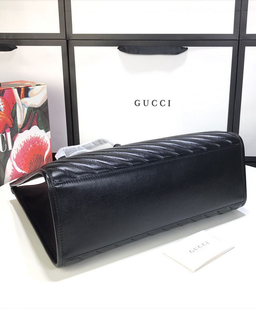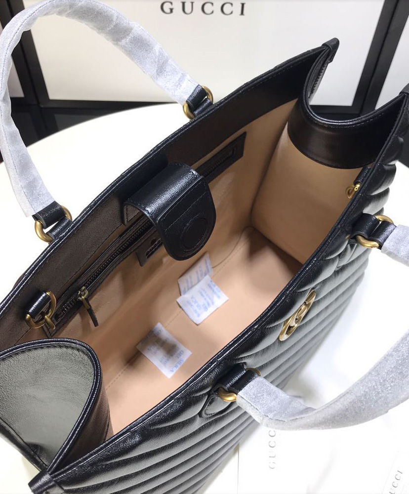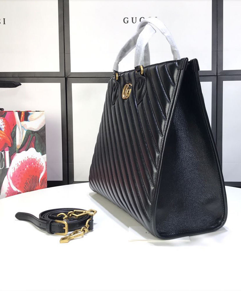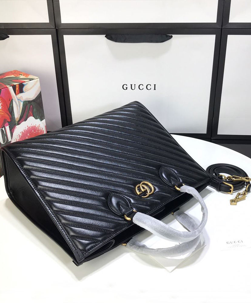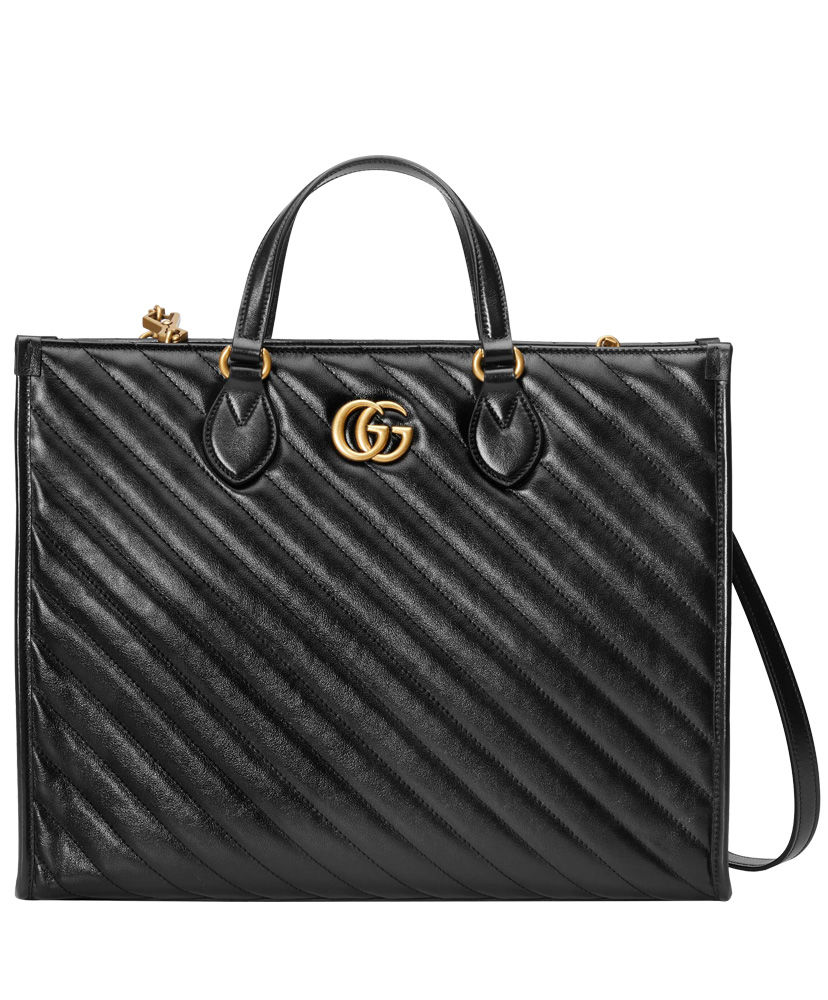 A top handle tote with an additional shoulder strap is introduced to the GG Marmont line for Pre-Fall 2020, in matelasse leather defined by the distinctive Double G.