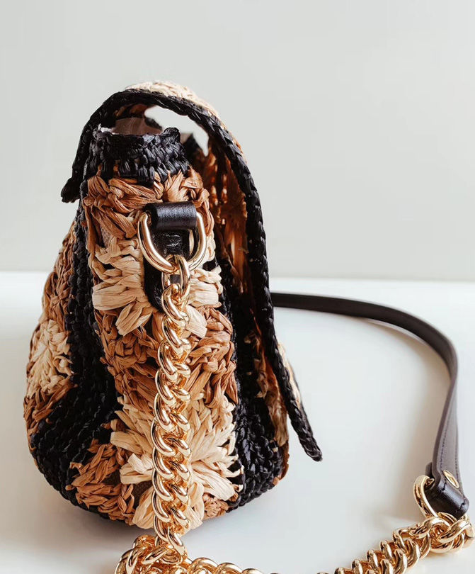 Viscose raffia with crochet flower motif
