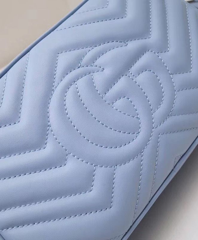 Pastels push the color focus throughout the Pre-Fall 2020 collection, in soft, vibrant hues, including this light yellow shade presented in matelassé leather with a chevron design. The softly structured small GG Marmont chain shoulder bag is finished with a zip top closure and the recognizable Double G. The chain shoulder strap has a leather shoulder detail for added comfort.