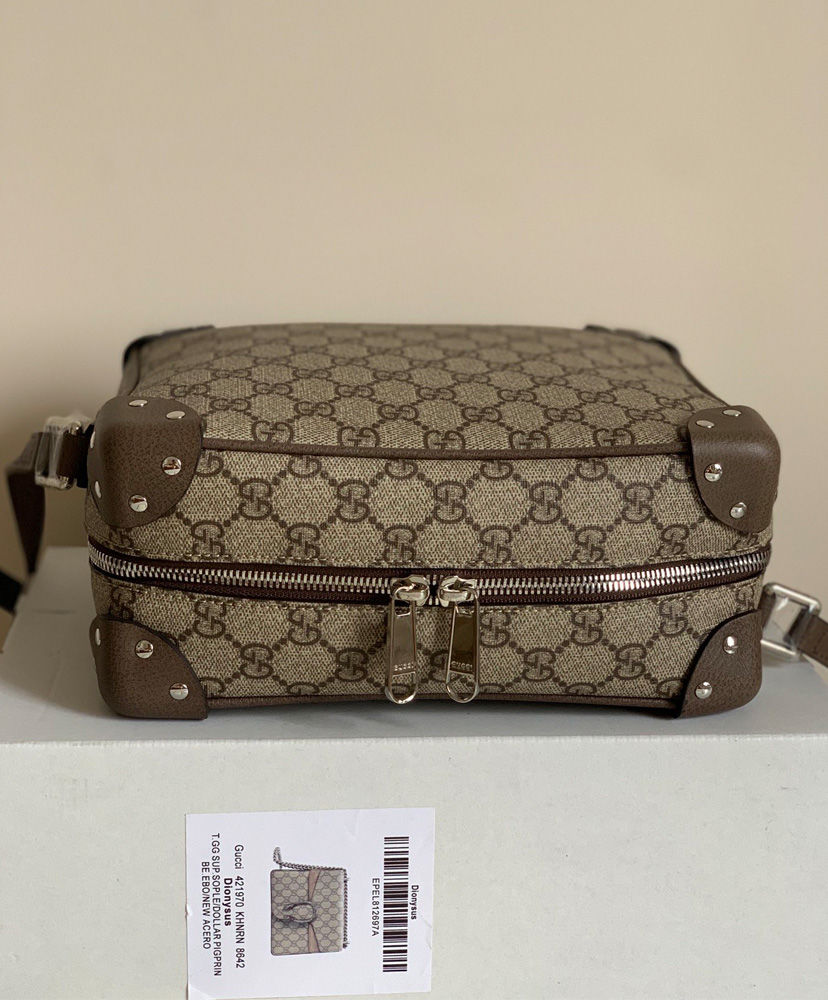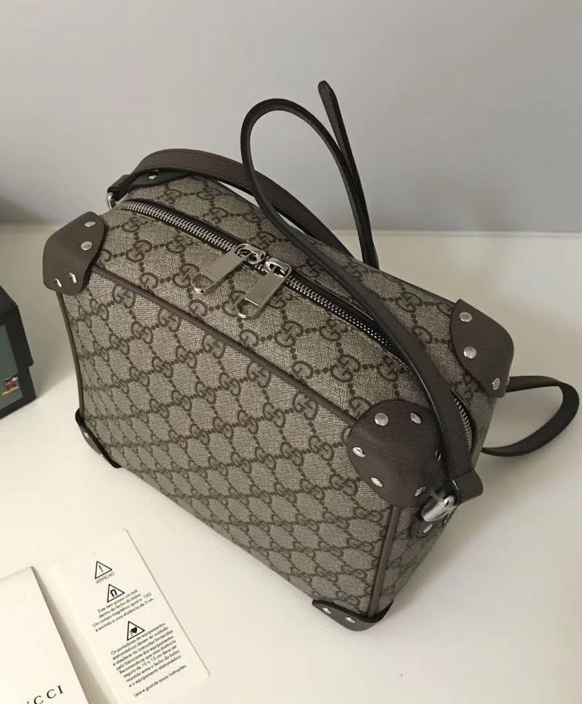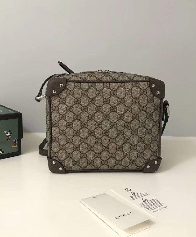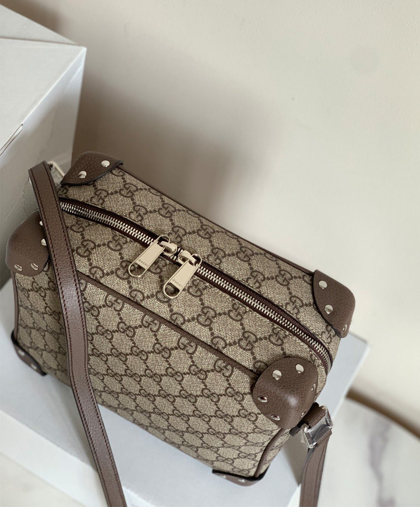 Inspired by vintage trunks and travel luggage, the GG Supreme shoulder bag has a squared shape, finished with leather corners and zip-top closure. Reminiscent of traditional suitcases, the structured design is finished with logo engraved metal feet. Pieces with versatile ways to wear and style embrace each person who is part of the House’s individual spirit.