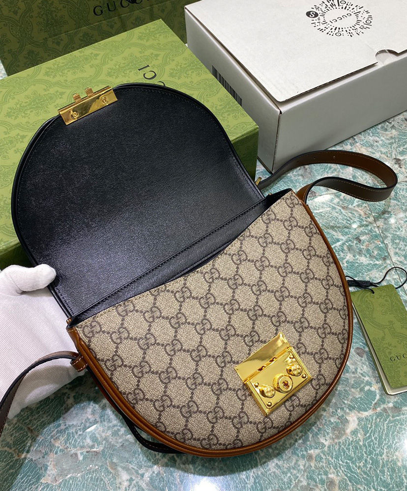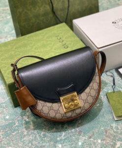 He Padlock family is enriched with the introduction of a crescent shaped shoulder bag. Crafted from the House’s monogram canvas, the style is offset by contrasting leather details and completed by the line’s signature lock closure.