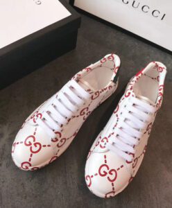 White leather with red GG print