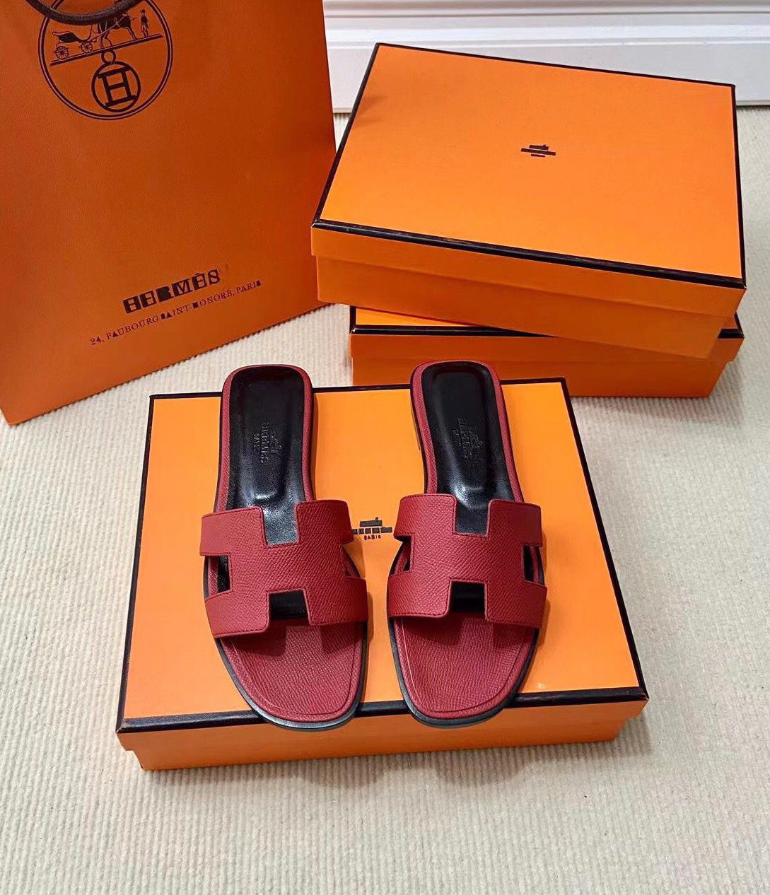 Discover the Iconic Hermès Style: Epsom Calfskin Sandals with Signature “H” Cut-Out. Elevate Your Wardrobe with This Must-Have Piece