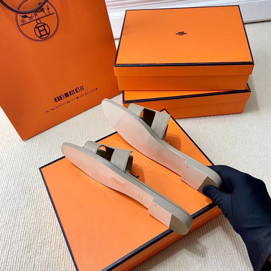 Discover the Iconic Hermès Style: Epsom Calfskin Sandals with Signature “H” Cut-Out. Elevate Your Wardrobe with This Must-Have Piece