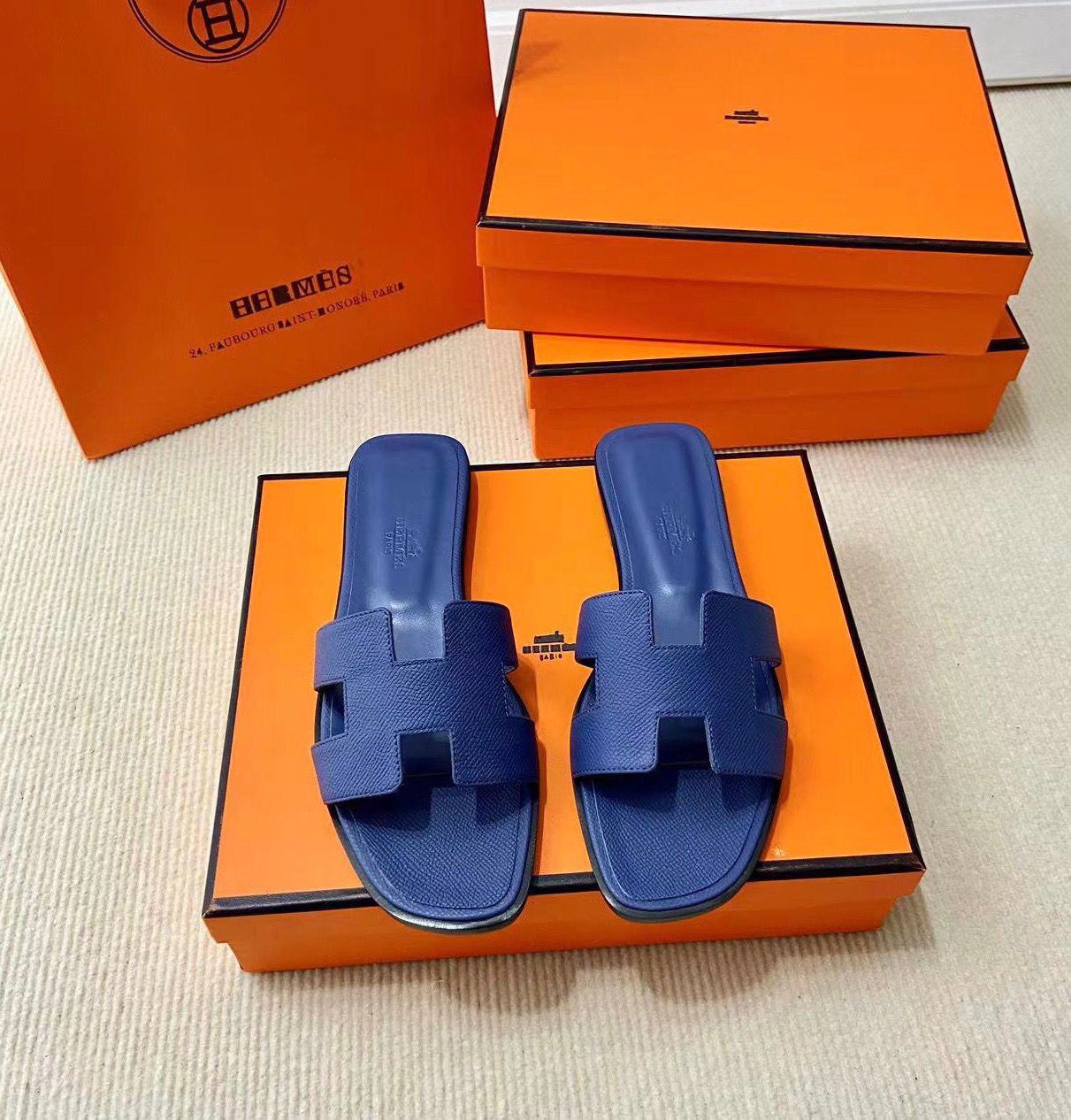 Discover the Iconic Hermès Style: Epsom Calfskin Sandals with Signature “H” Cut-Out. Elevate Your Wardrobe with This Must-Have Piece