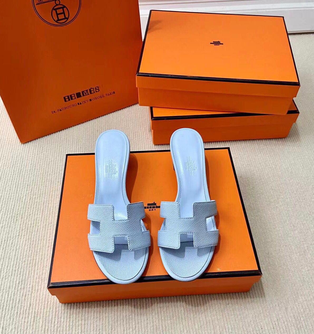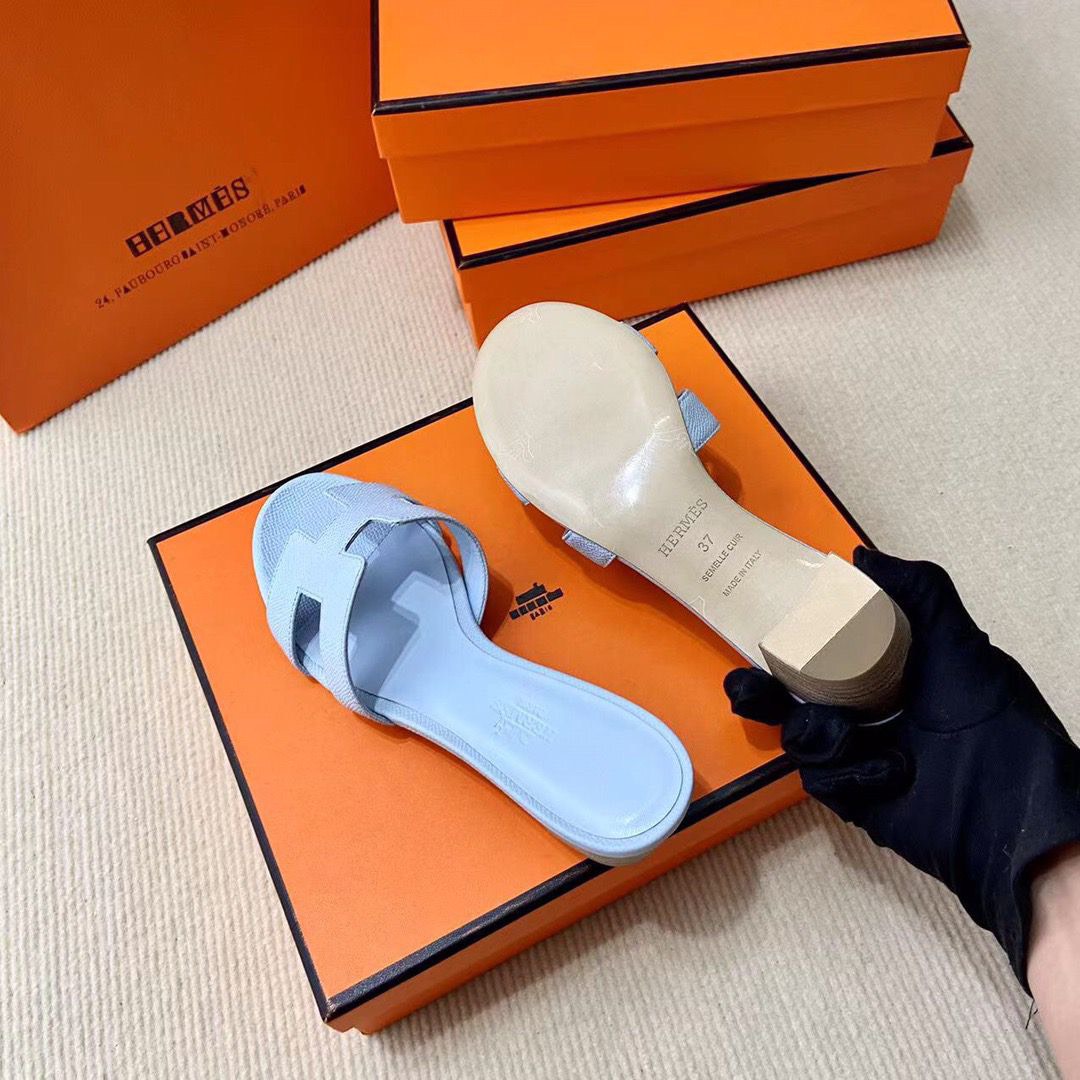Discover the Iconic Hermès Style: Epsom Calfskin Sandals with Signature “H” Cut-Out. Elevate Your Wardrobe with This Must-Have Piece