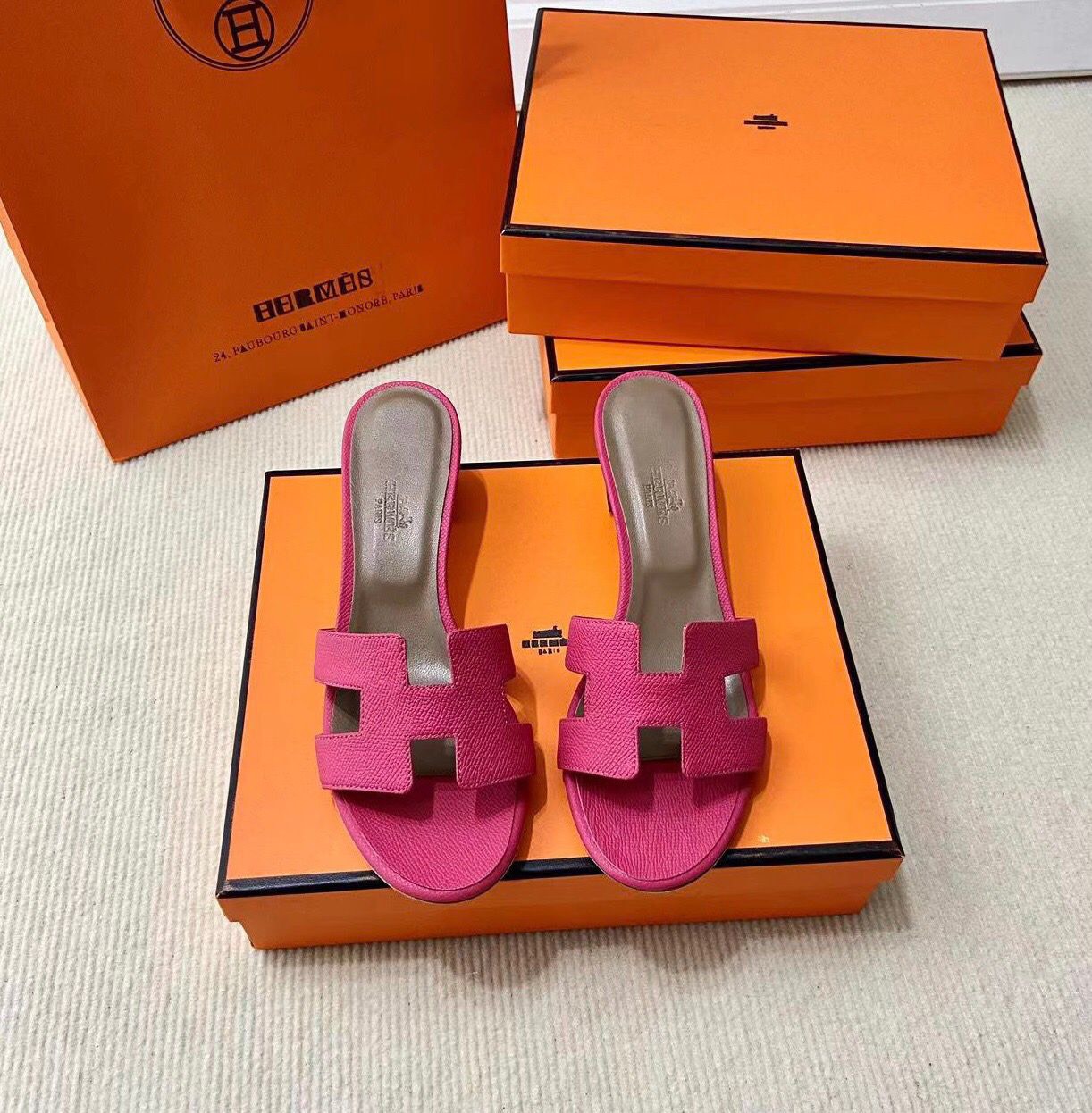 Discover the Iconic Hermès Style: Epsom Calfskin Sandals with Signature “H” Cut-Out. Elevate Your Wardrobe with This Must-Have Piece