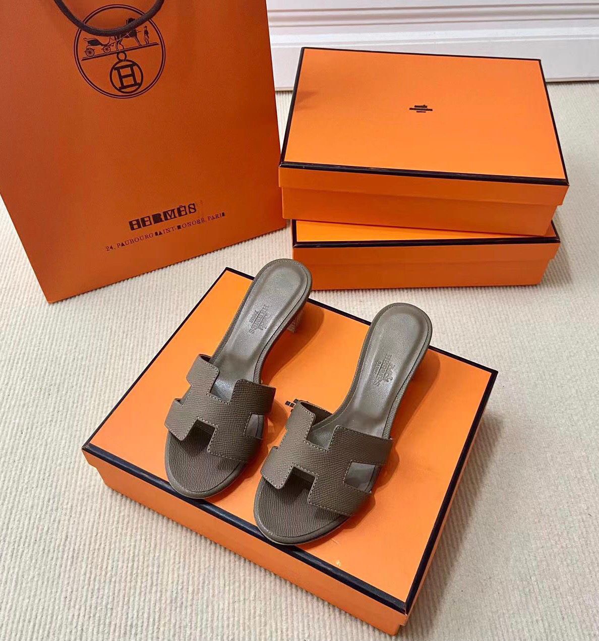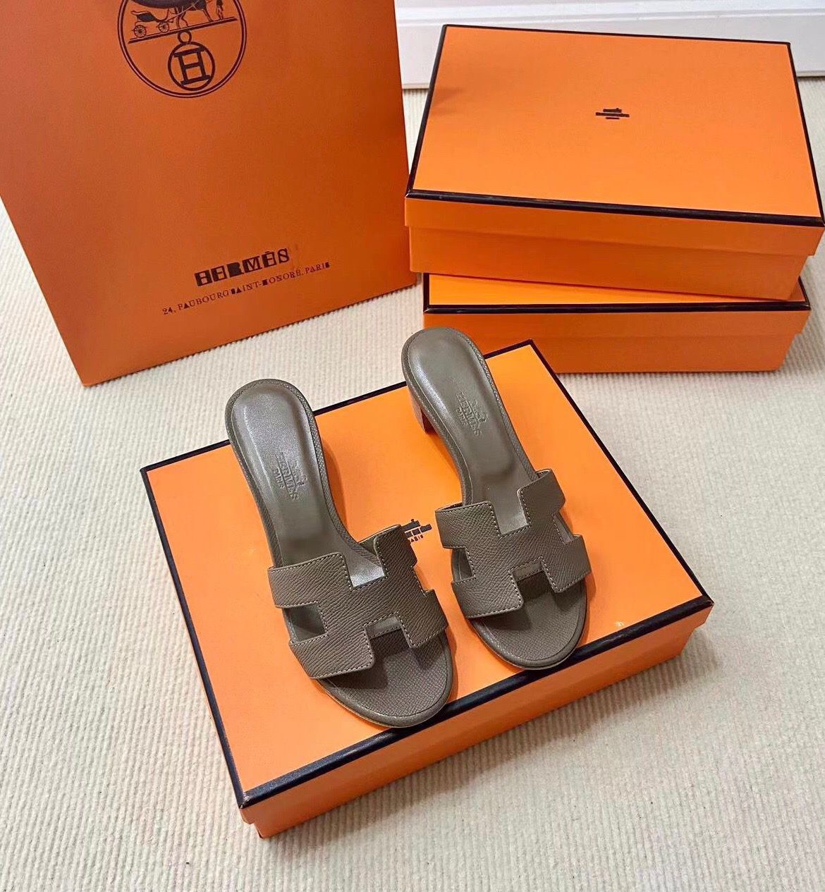 Discover the Iconic Hermès Style: Epsom Calfskin Sandals with Signature “H” Cut-Out. Elevate Your Wardrobe with This Must-Have Piece