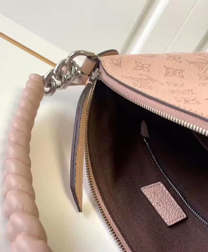 The Babylone BB Chain handbag is crafted from soft, supple Mahina calf, an intricately perforated leather with a subtle Monogram pattern. Fashionably small yet roomy enough for essentials, this model is fitted with a sheepskin-covered chain handle for elbow, hand or short-shoulder carry, as well as a detachable strap for hands-free, cross-body wear.