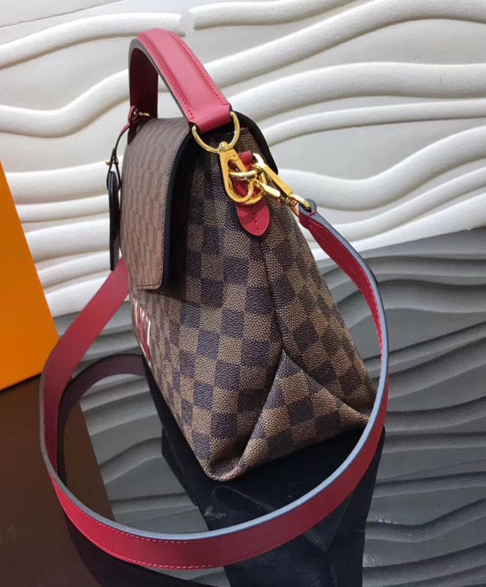 Louis Vuitton’s new Beaubourg bag in Damier Ebene canvas combines a casual-chic soft feel with striking leather trim in timeless black or eye-catching scarlet. A special 3D-effect LV signature adds a colorful, emblematic touch. Practical features like removable handle and strap, and a large flap with an easy-to-open magnetic clasp make it ideal for everyday use.