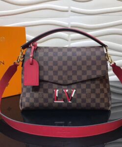 Louis Vuitton’s new Beaubourg bag in Damier Ebene canvas combines a casual-chic soft feel with striking leather trim in timeless black or eye-catching scarlet. A special 3D-effect LV signature adds a colorful, emblematic touch. Practical features like removable handle and strap, and a large flap with an easy-to-open magnetic clasp make it ideal for everyday use.
