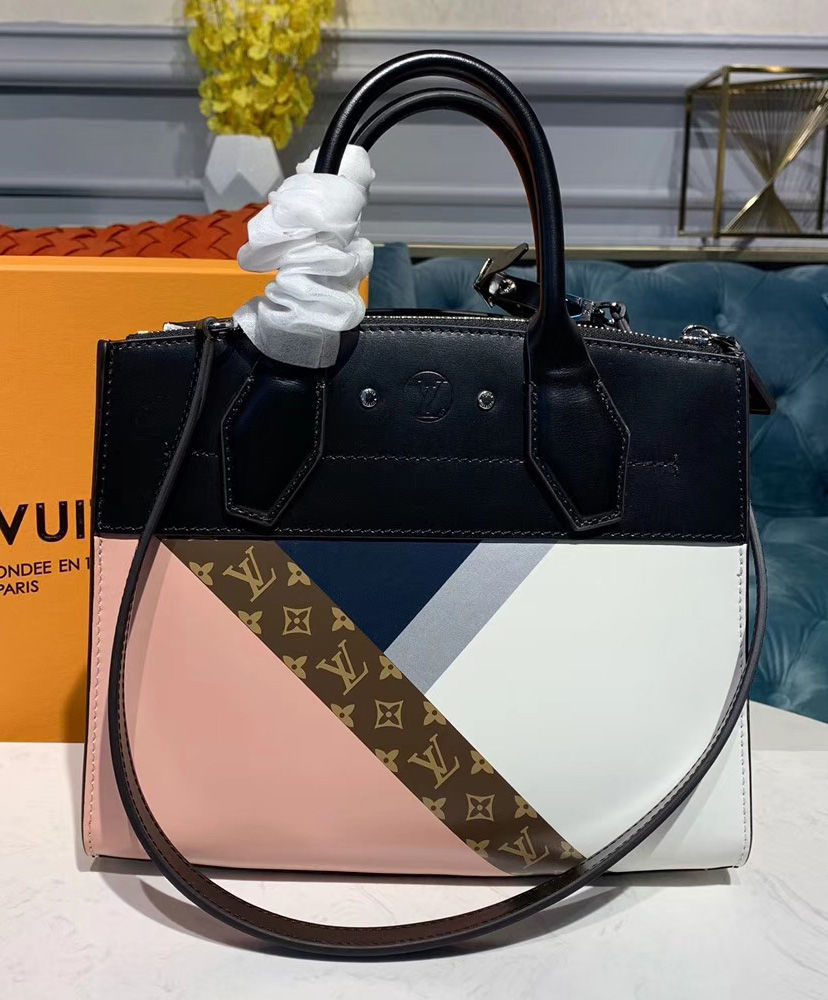 Crafted from a striking patchwork of printed calfskin leather, the City Steamer MM is a stylish handbag first seen in the Spring-Summer 2019 collection. Two stitched mounted handles allow for hand-carry, while the removable shoulder strap adds a dash of versatility. The addition of the graphic Monogram Tape detail is a chic House flourish.
