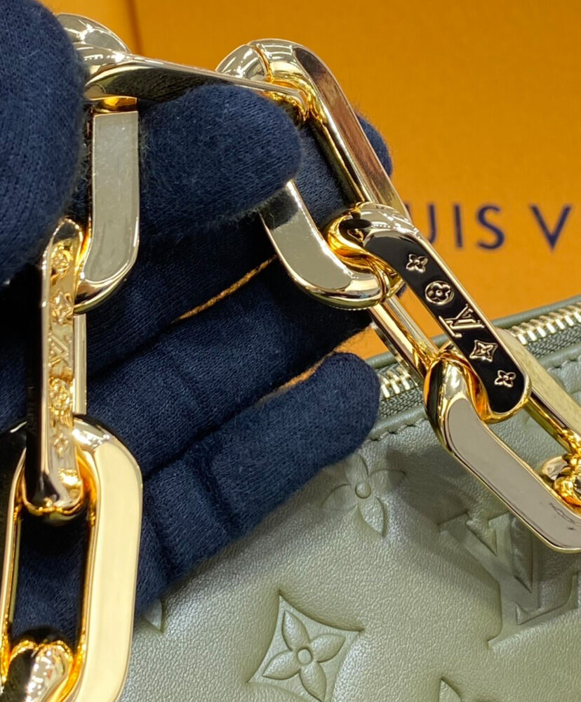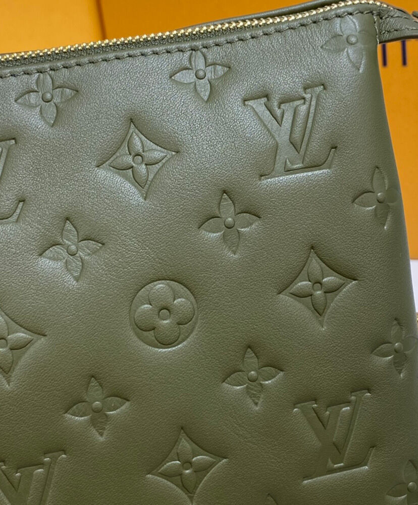 The most eye-catching bag of the Spring-Summer 2021 Collection, the Coussin MM Bag is fashioned from puffy lambskin and embossed with a Monogram pattern. Voluminous, soft and supple, the bag almost feels like a pillow. An adjustable leather strap allows shoulder and cross-body carry, while the new Edge Chain enables under-arm and baguette carry.