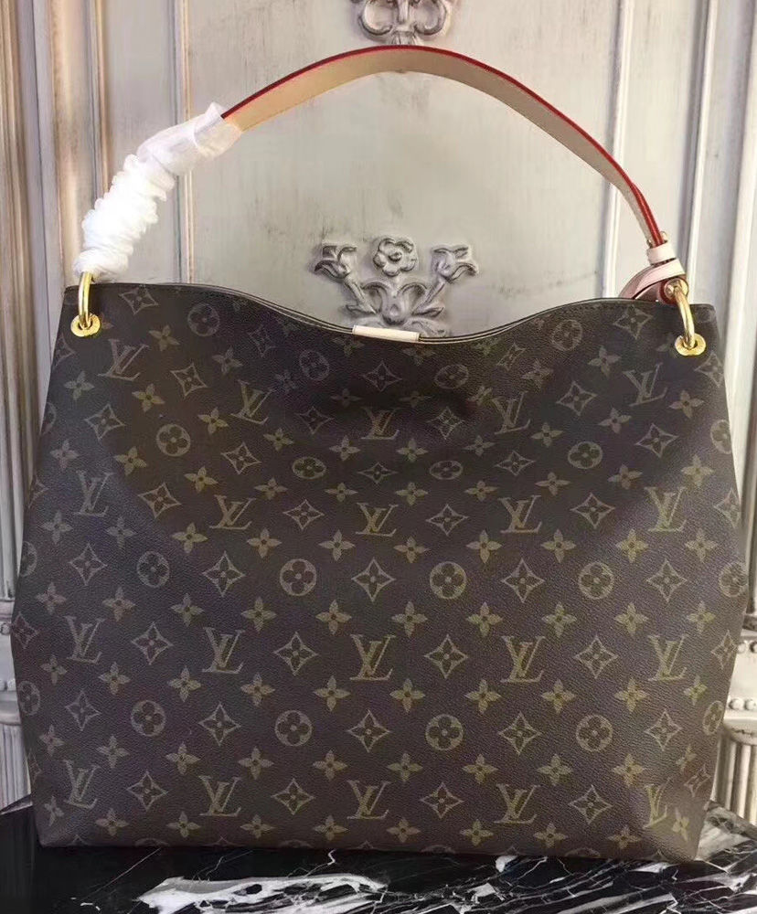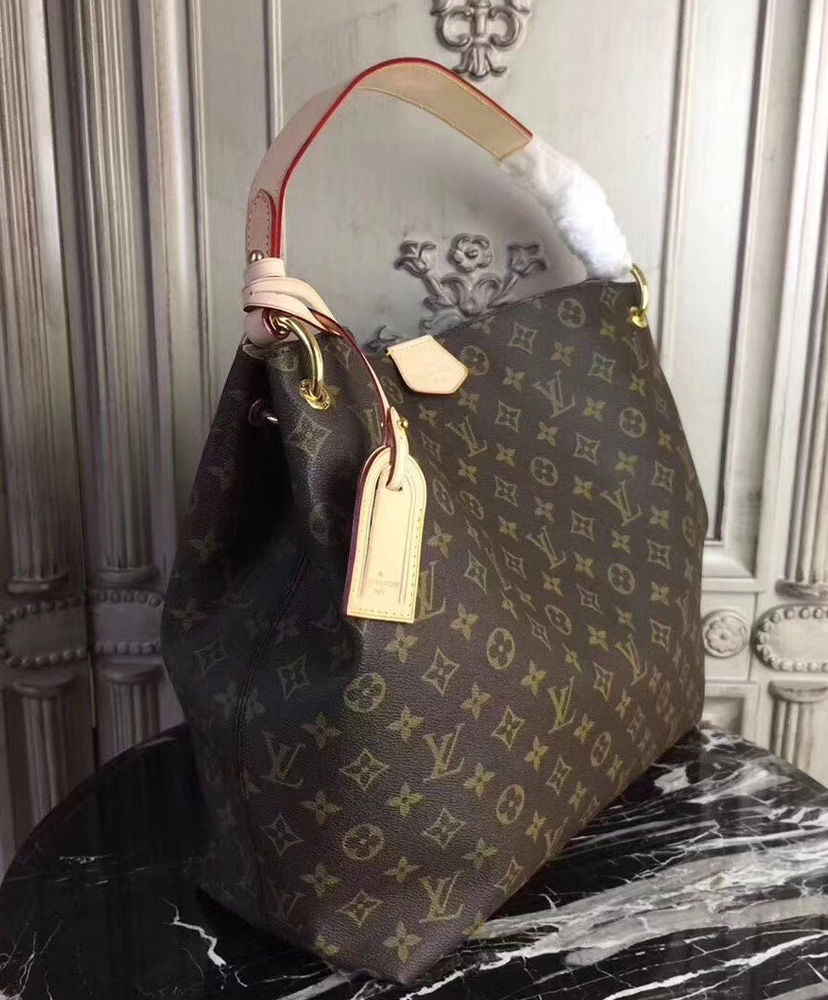 The spacious Graceful hobo has a lightweight, body-friendly design that makes it perfect for every day. The flat handle sits easily on the shoulder, while emblematic details, such as the leather name tag, reference Louis Vuitton’s travel heritage.