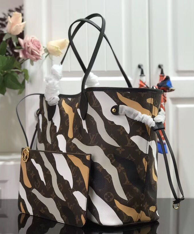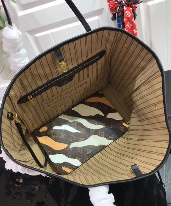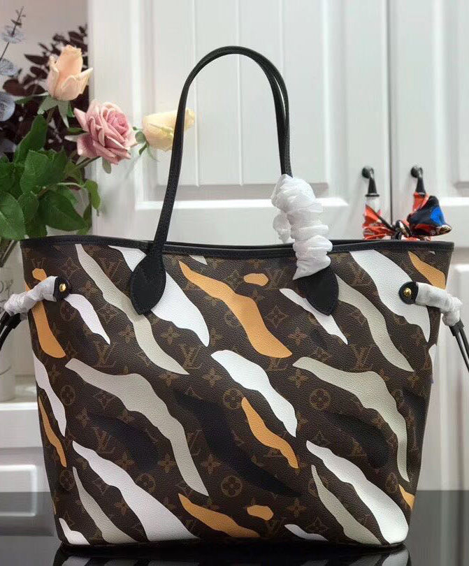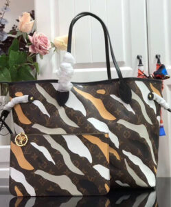 Designed for the exclusive Louis Vuitton x League of Legends capsule collection, this Neverfull bag is crafted from Monogram canvas, featuring a camouflage print inspired by LoL’s champions. This limited-edition piece combines of-the-minute cool with timeless House heritage.