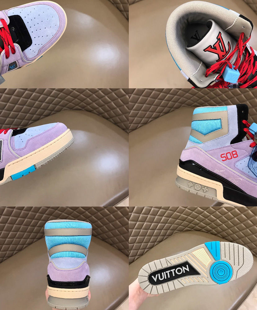 The iconic LV Trainer sneaker boot, designed by Louis Vuitton Artistic Director Virgil Abloh, is revisited this season in purple suede calf leather. The luggage tag was inspired by the transparent leather goods of the Spring-Summer 2019 show, while the embroidered 508 refers to the first edition of this hi-top, which was numbered 408.