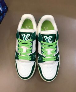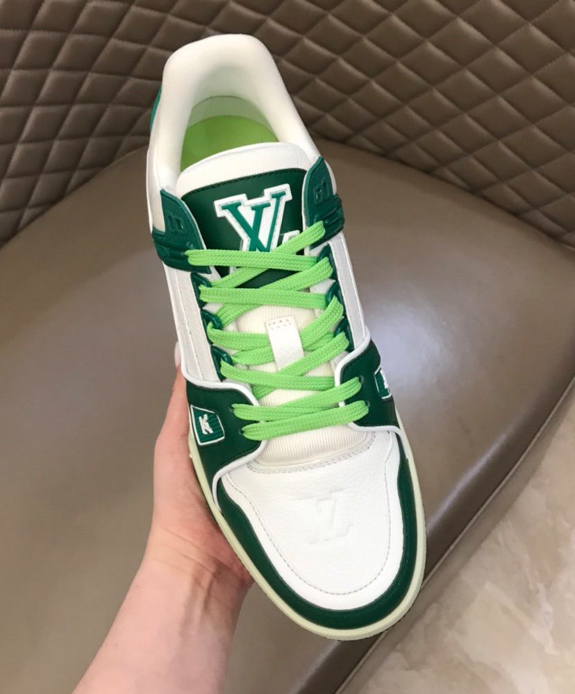 nspired by basketball sneakers and designed by Virgil Abloh, the iconic LV Trainer sneaker is revisited this season in a bold color palette. The upper in grained calf leather is discreetly embossed with the Monogram pattern. This richly detailed design is notable for its innovative gel-injected outsole, which provides extra comfort.