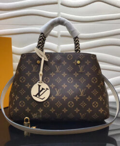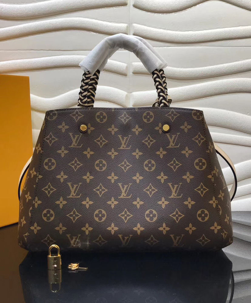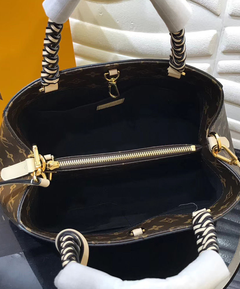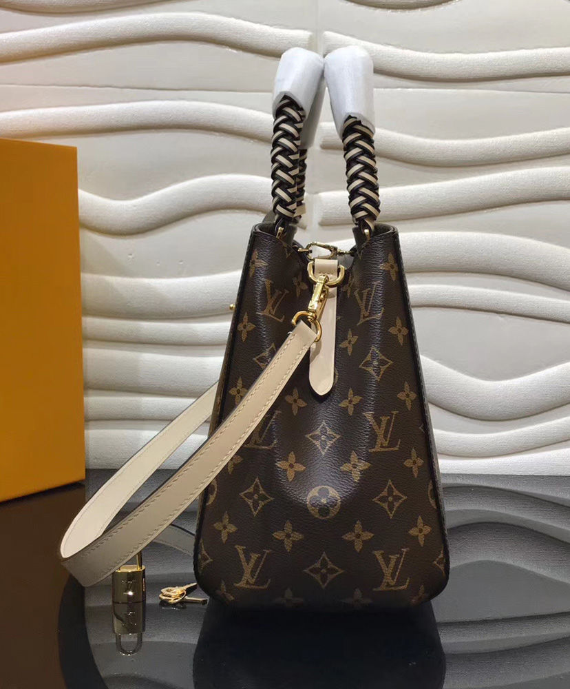 With braided-leather top handles, the structured Montaigne BB handbag in Monogram canvas takes on an artsy feel. Classic Louis Vuitton details such as the key bell are complemented by modern touches like an oversized LV charm. This small bag can be worn on the elbow or over the shoulder, thanks to its detachable strap.