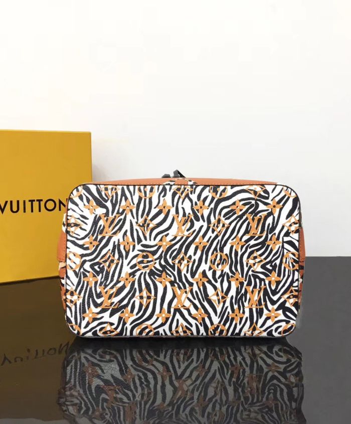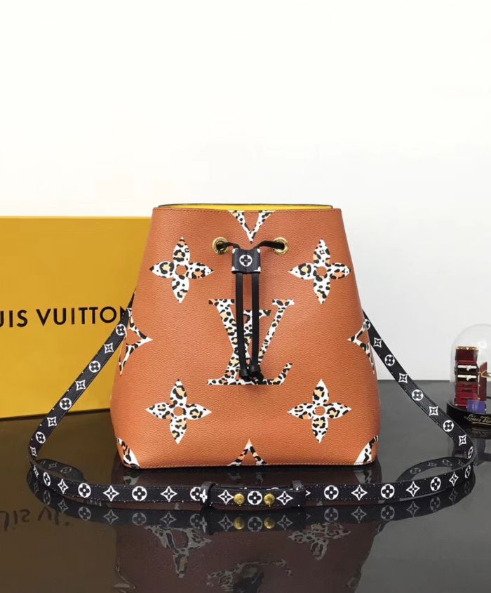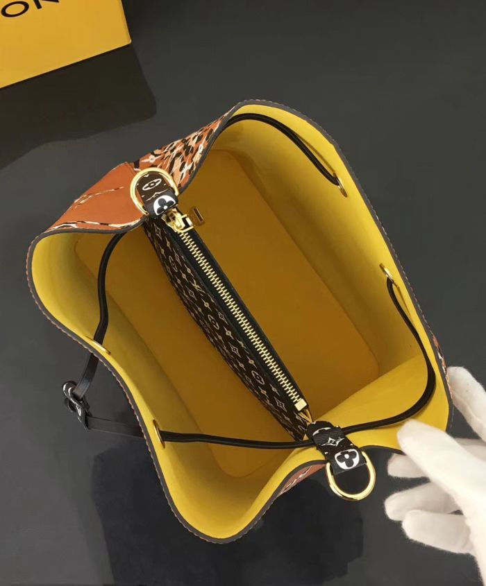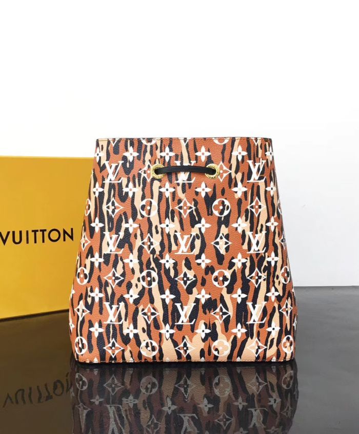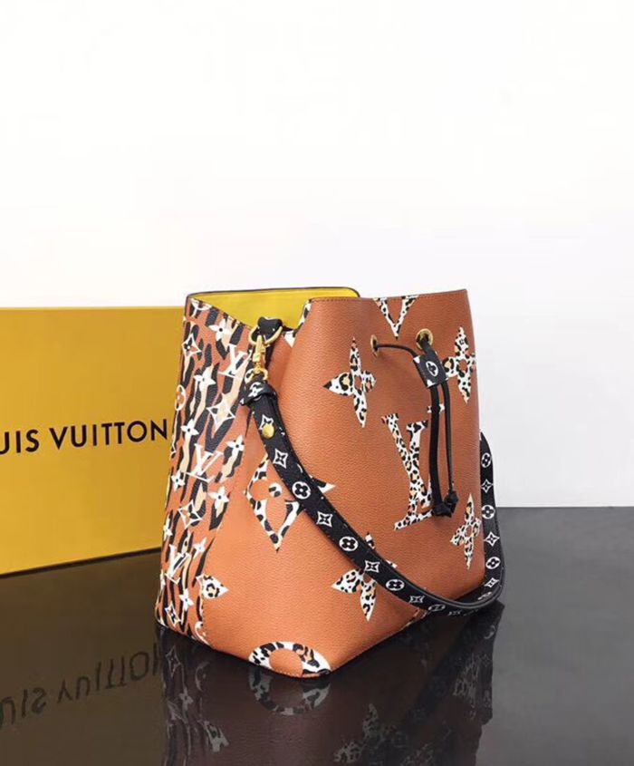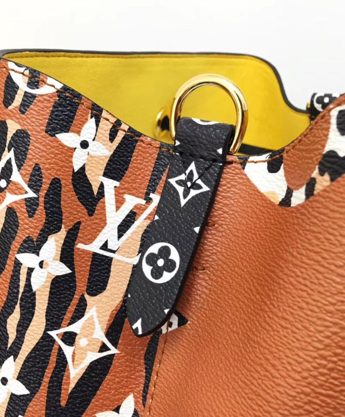 Mixing the Monogram motif with animal patterns, the NeoNoe takes on a savage look as part of the LV Jungle capsule collection. This bucket bag is both boldly fashionable and remarkably practical, thanks to its body-friendly and light-weight construction. Its adjustable strap enables three carrying styles: short or long shoulder and cross-body.