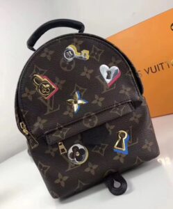 From the Love Lock capsule for Spring 2019, the Palm Springs backpack is adorned with lock, key and flower motifs: emblems of the House and symbols of lasting love. The colorful metallic designs are expertly fused onto Monogram canvas, for a surprising 3D effect. Charming and collectible, this mini model makes a romantic Valentine’s present.
