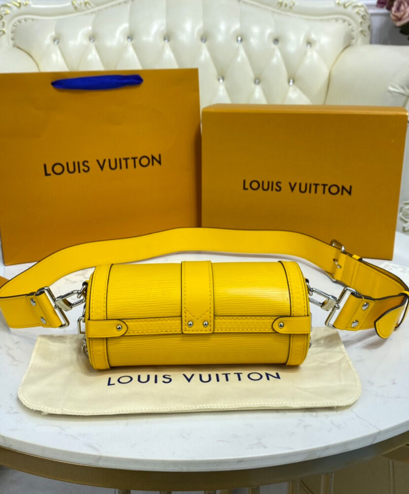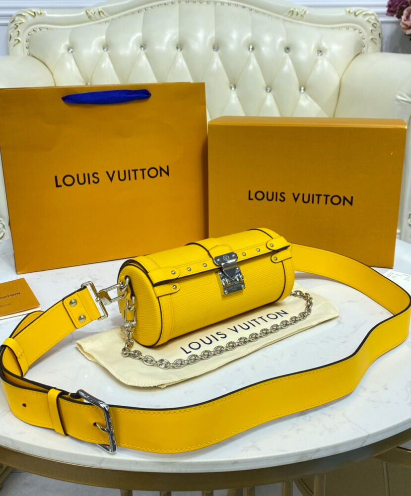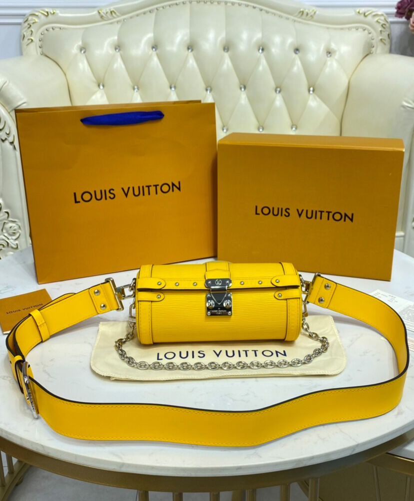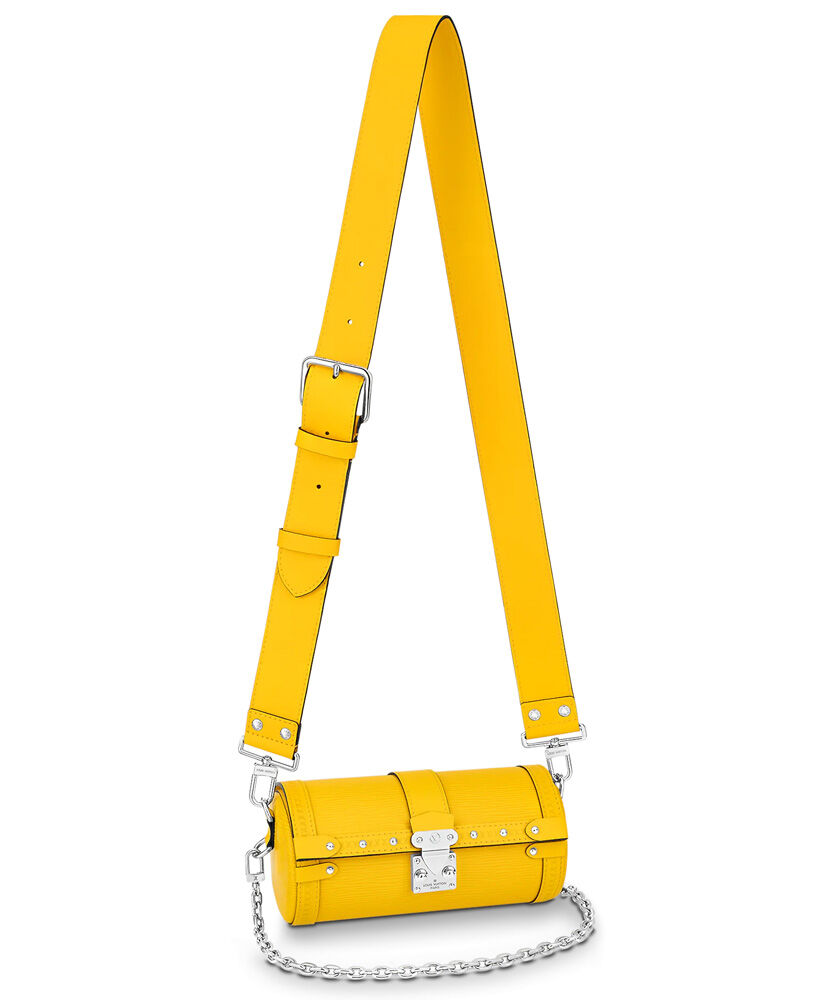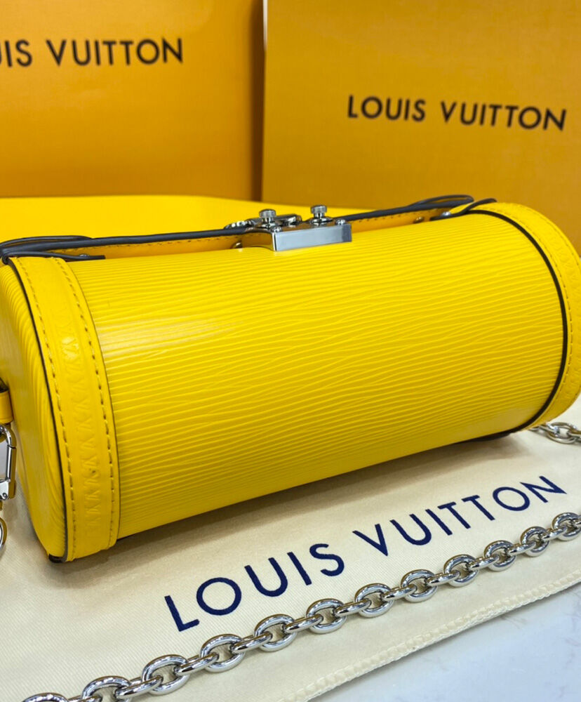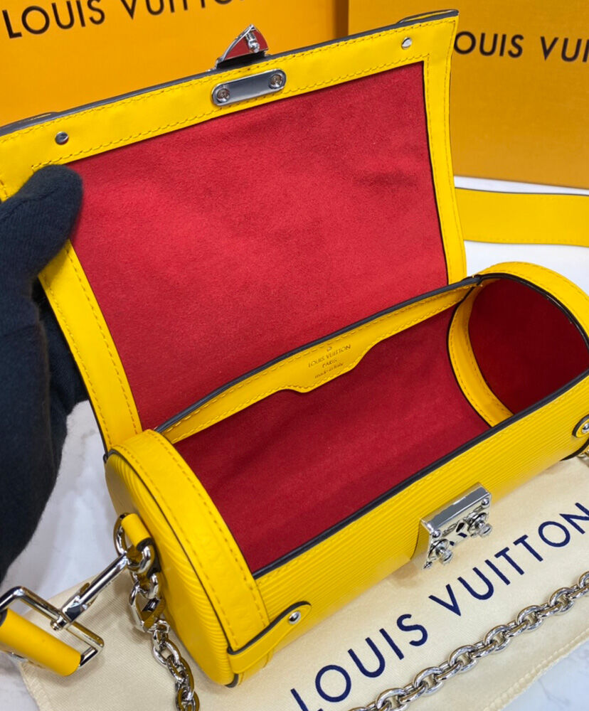 Made from embossed Epi leather and finished with metallic rivets and an S-lock, the distinctive Papillon Trunk handbag combines contemporary style with traditional Louis Vuitton design cues. This semi-rigid baguette bag can be carried by hand but also boasts a detachable strap for shoulder and cross-body carry.
