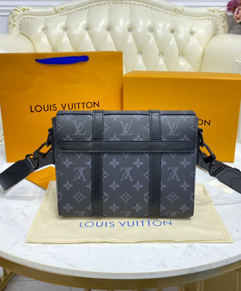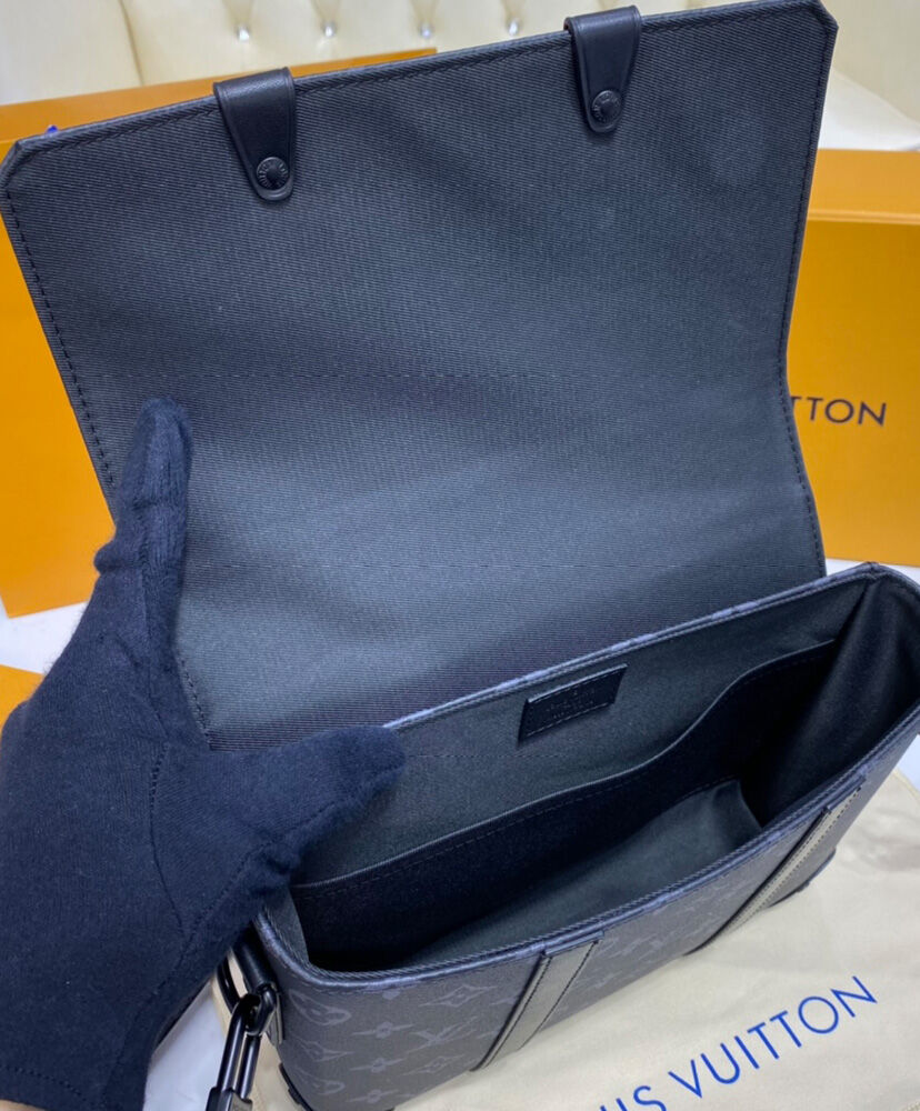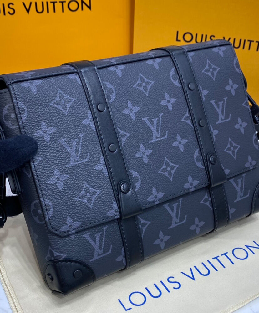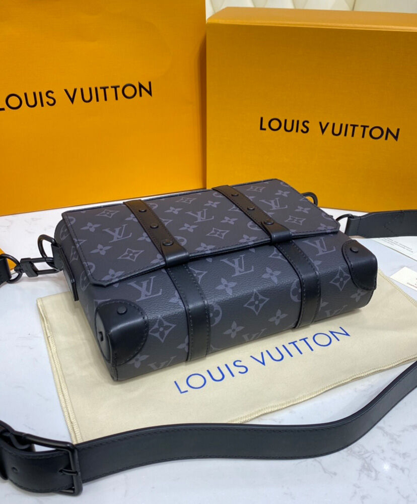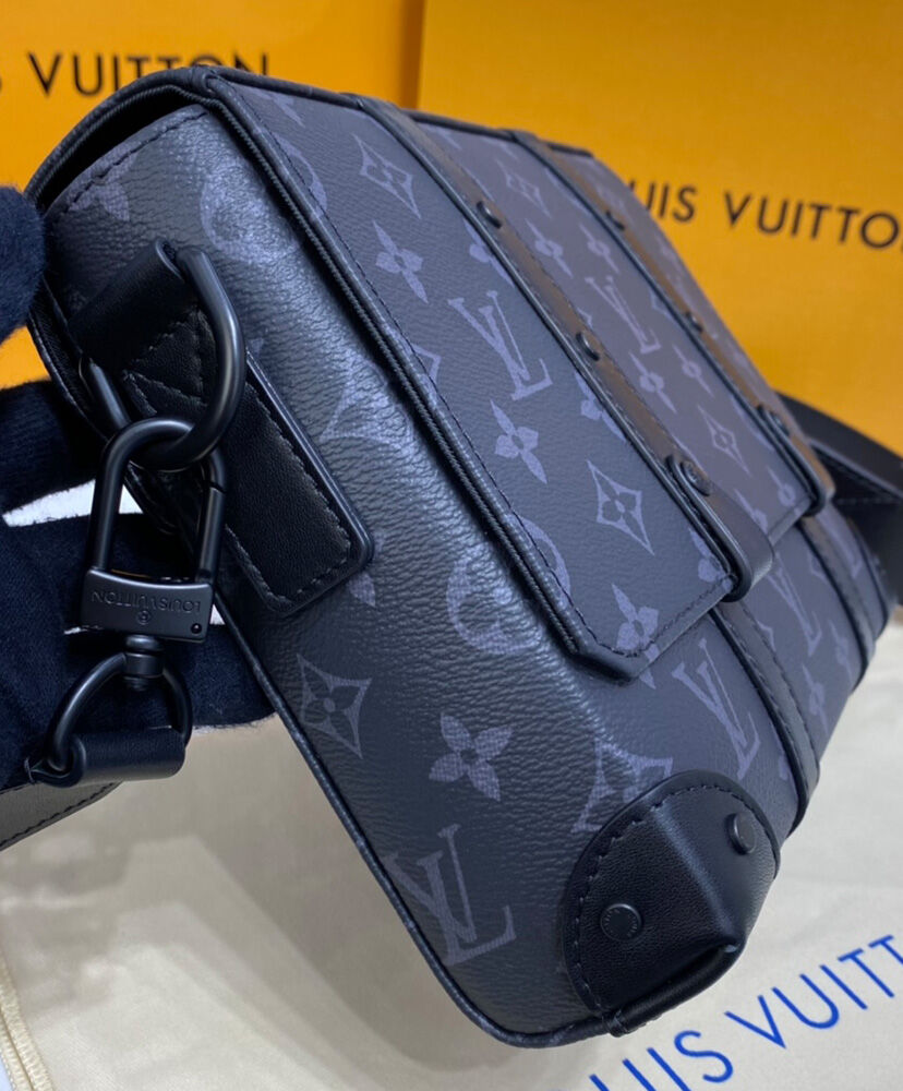 The Trunk Messenger is a small rectangular bag made from Monogram Eclipse canvas and finished with matte-black rivets and reinforced black-leather corners inspired by those on Louis Vuitton’s iconic trunks. It features an adjustable and removeable strap and numerous pockets, inside and out, to keep things organized and accessible.