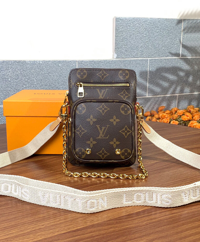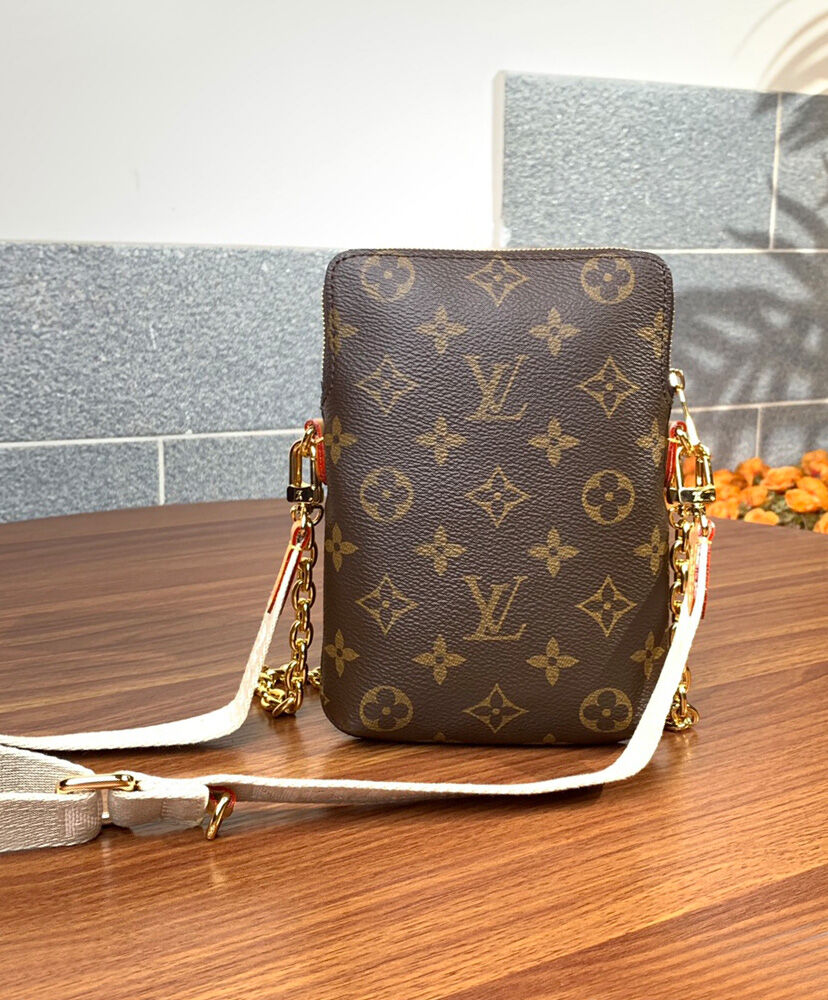 The Utility Phone Sleeve in Monogram canvas is an on-trend, multi-tasking bag for life on the go. It adapts to different sizes of smartphone and can also hold essentials like cards, cash or keys in its secure, zipped pockets. Both the adjustable canvas strap and the metal chain are removable and offer multiple carry options.