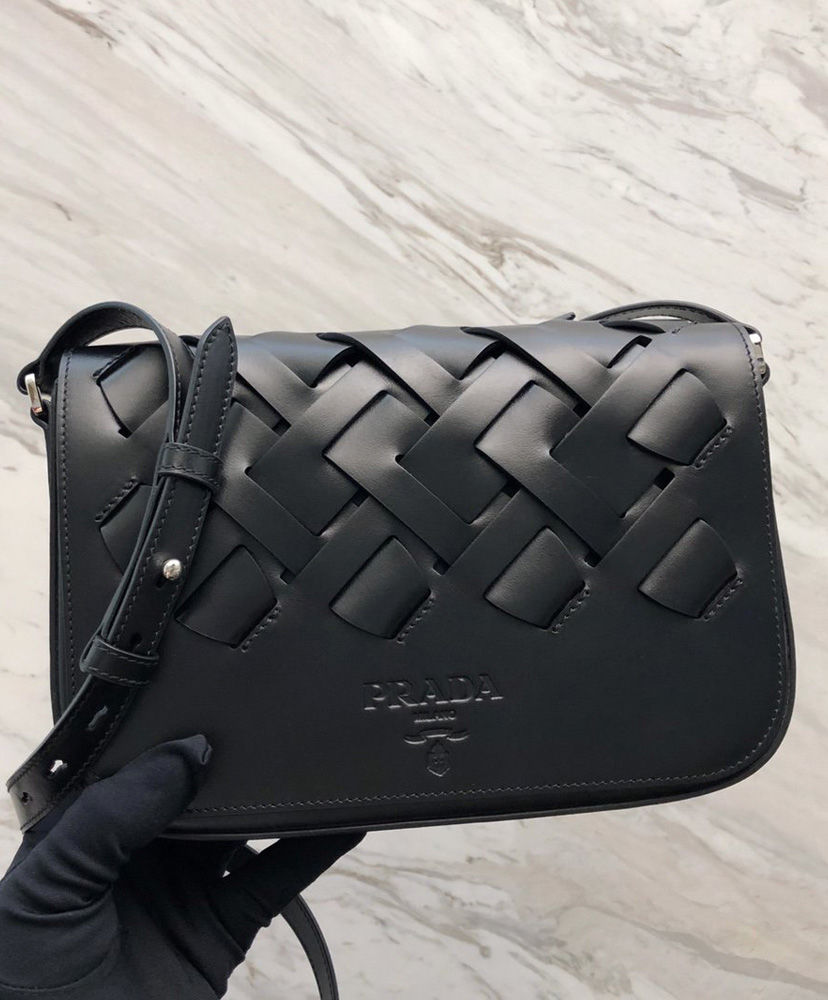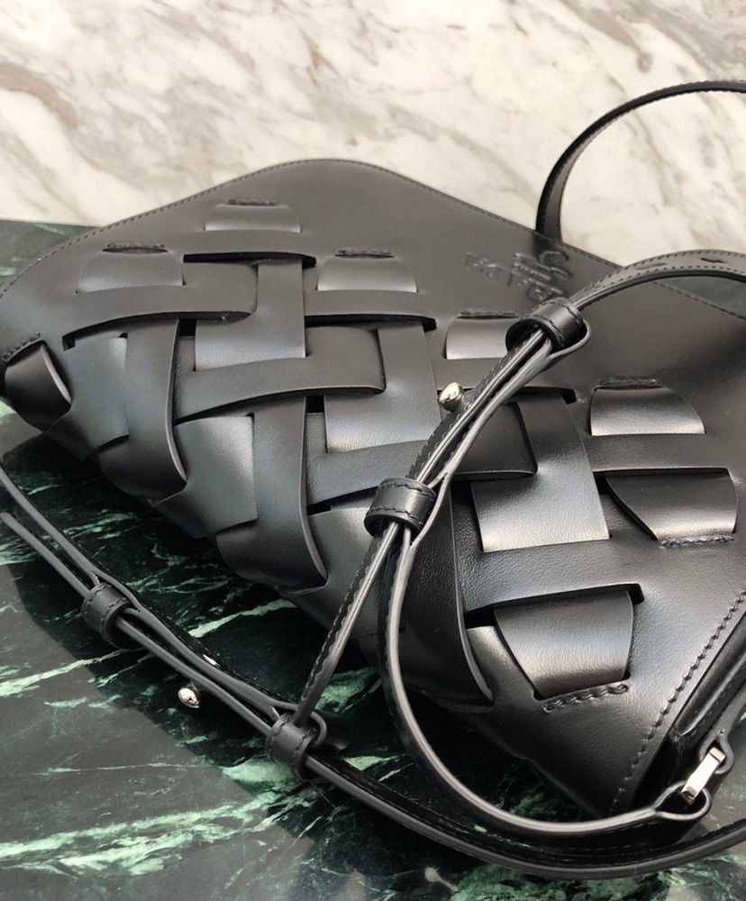 A refined woven motif characterizes the romantic and modern design of this leather bag. The bag has a shoulder strap.