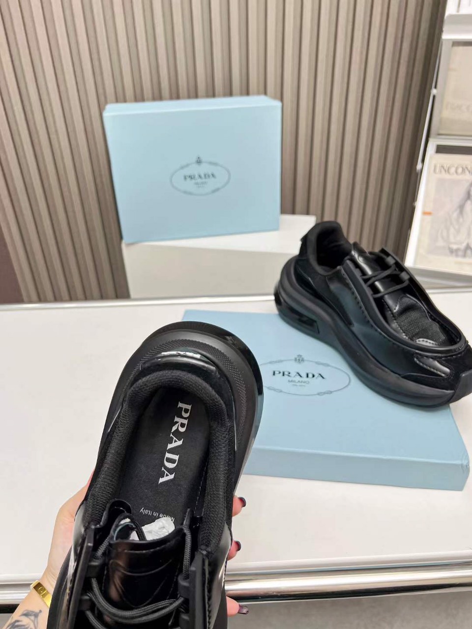 Discover the Prada Collections Style: Prada Unisex Shoes 2023 . Elevate Your Wardrobe with This Must-Have Piece.