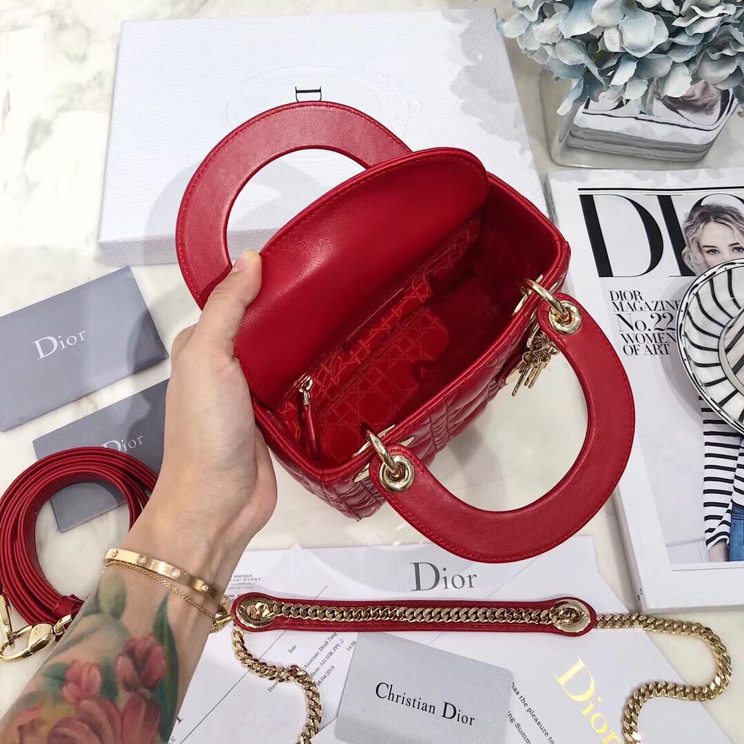 RED LAMBSKIN CHRISTIAN DIOR MINI LADY