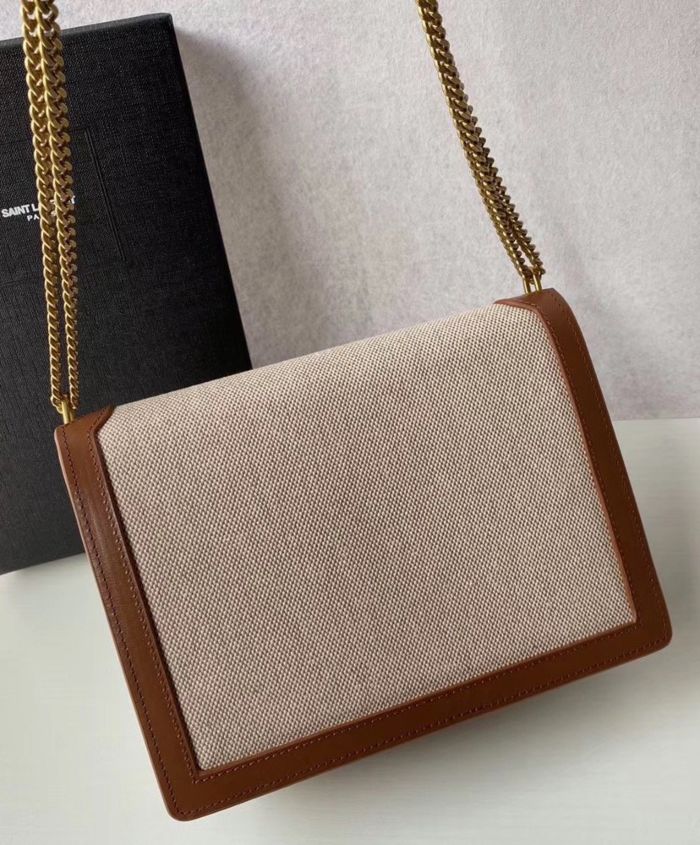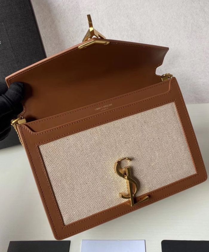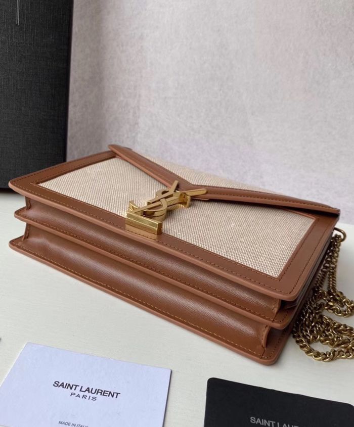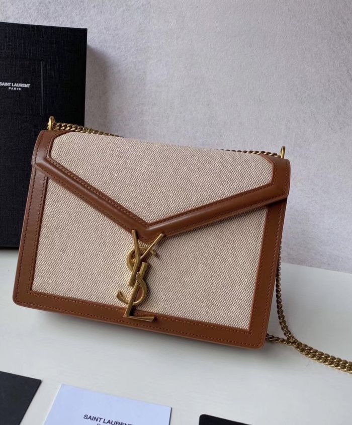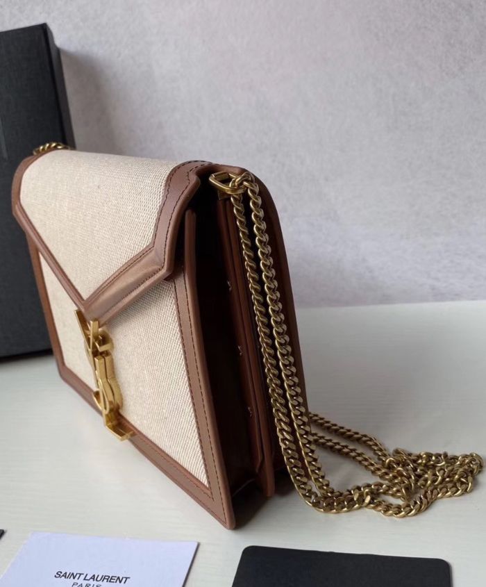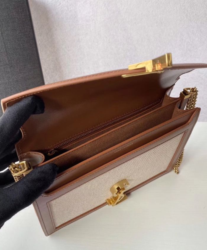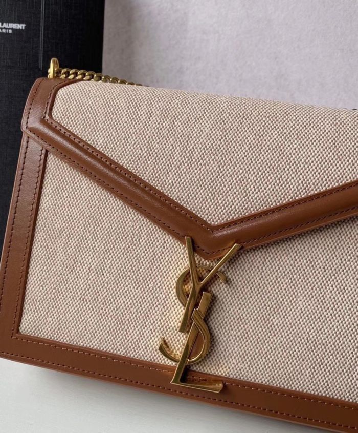 Bag with front flap decorated with a saint laurent paris-engraved square clip fastening, featuring an adjustable shoulder strap.