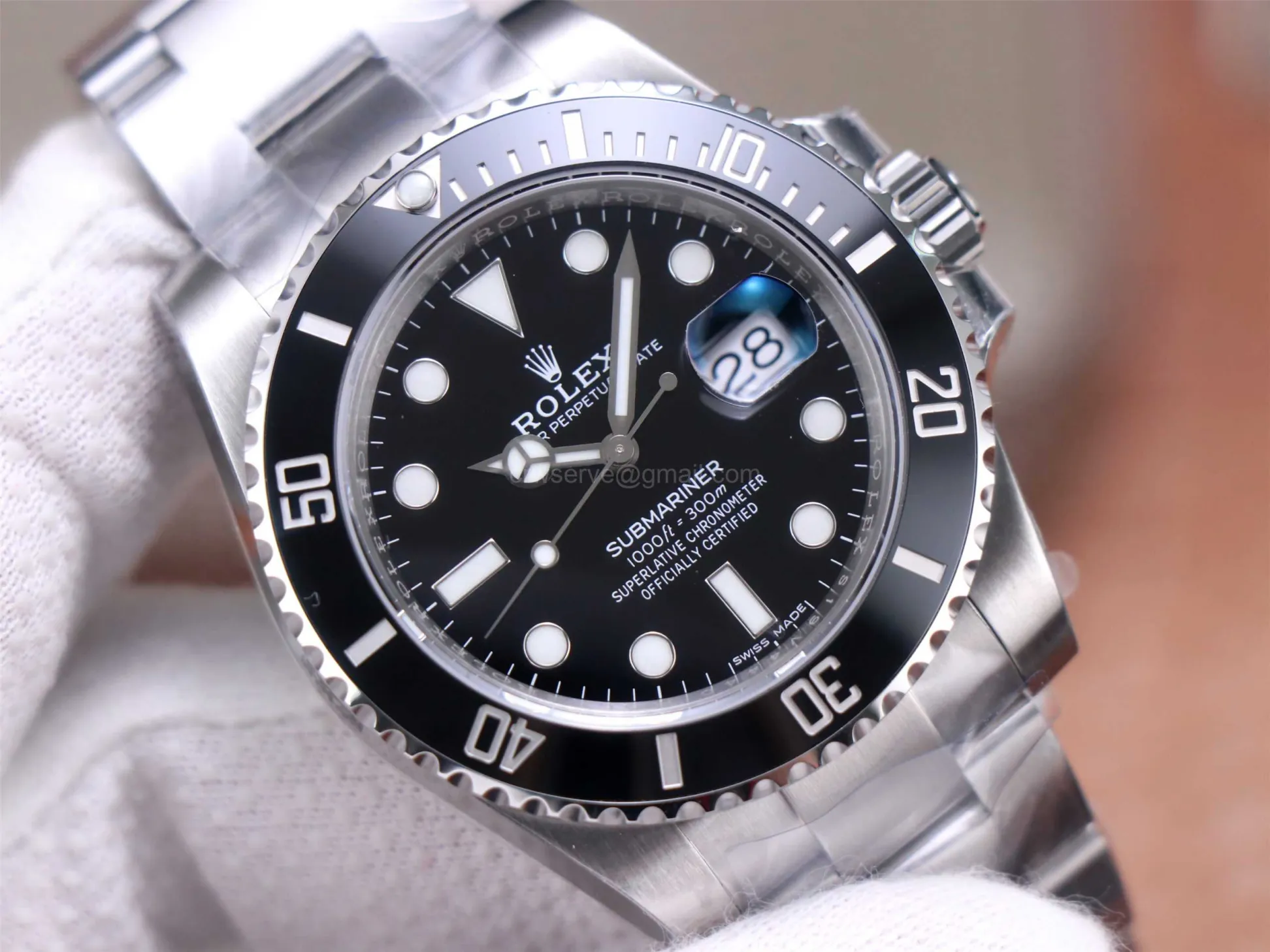 Crystal: Scratch-proof sapphire crystal with anti-reflection coated 2.5x cyclops (Swiss standard, double-sided, same as genuine)